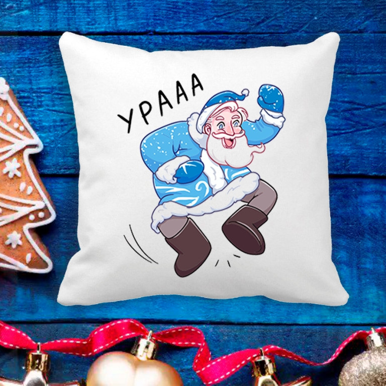 Описание Подушка с новогодним принтом Дед Мороз "Урааа" Белый Кавун П003662