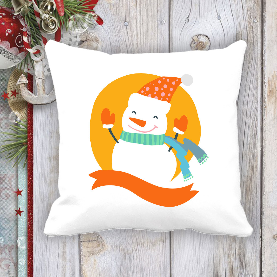 Подушка с новогодним принтом Снеговик Белый Кавун П003693