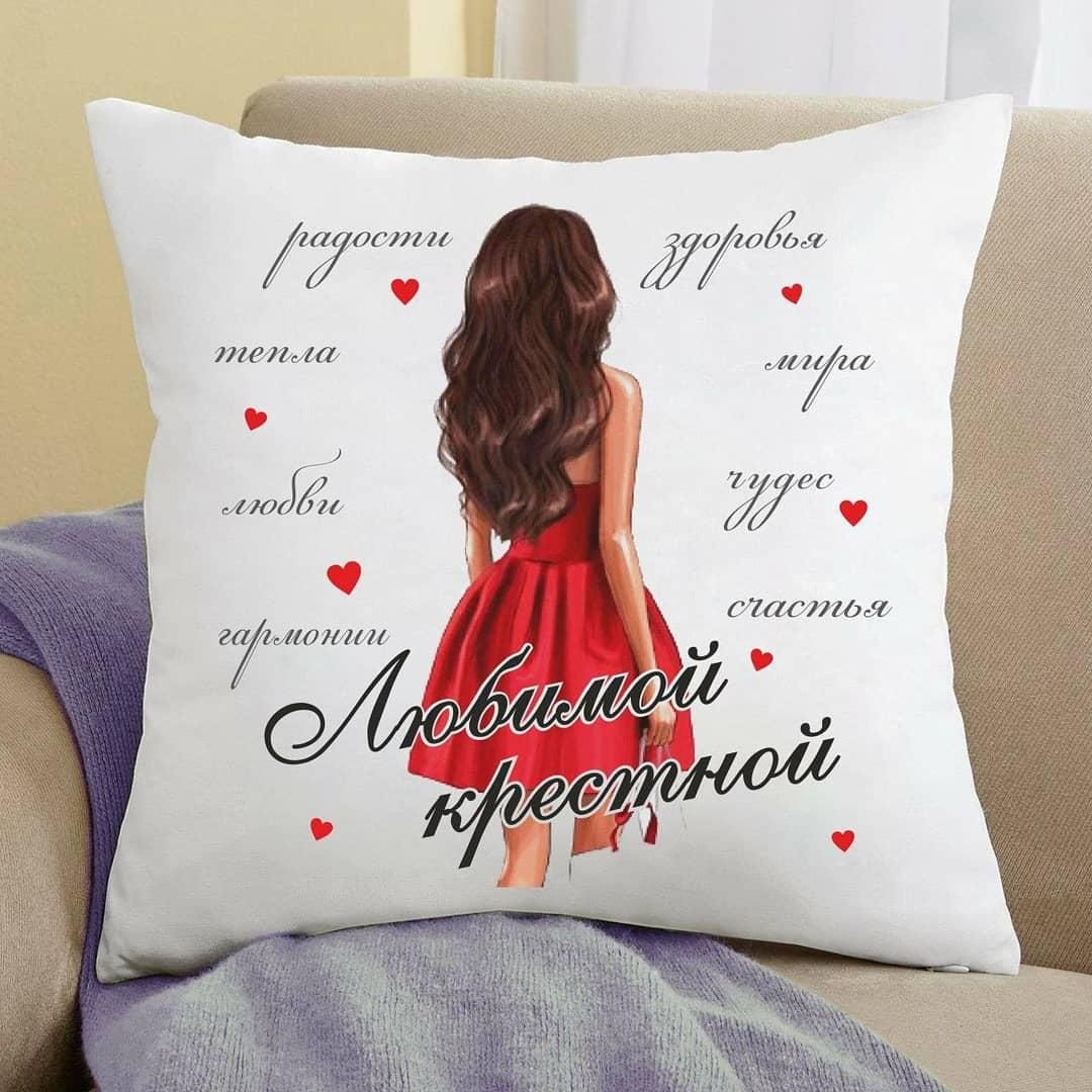 Подушка с принтом "Любимой крестной" Белый Кавун П000168