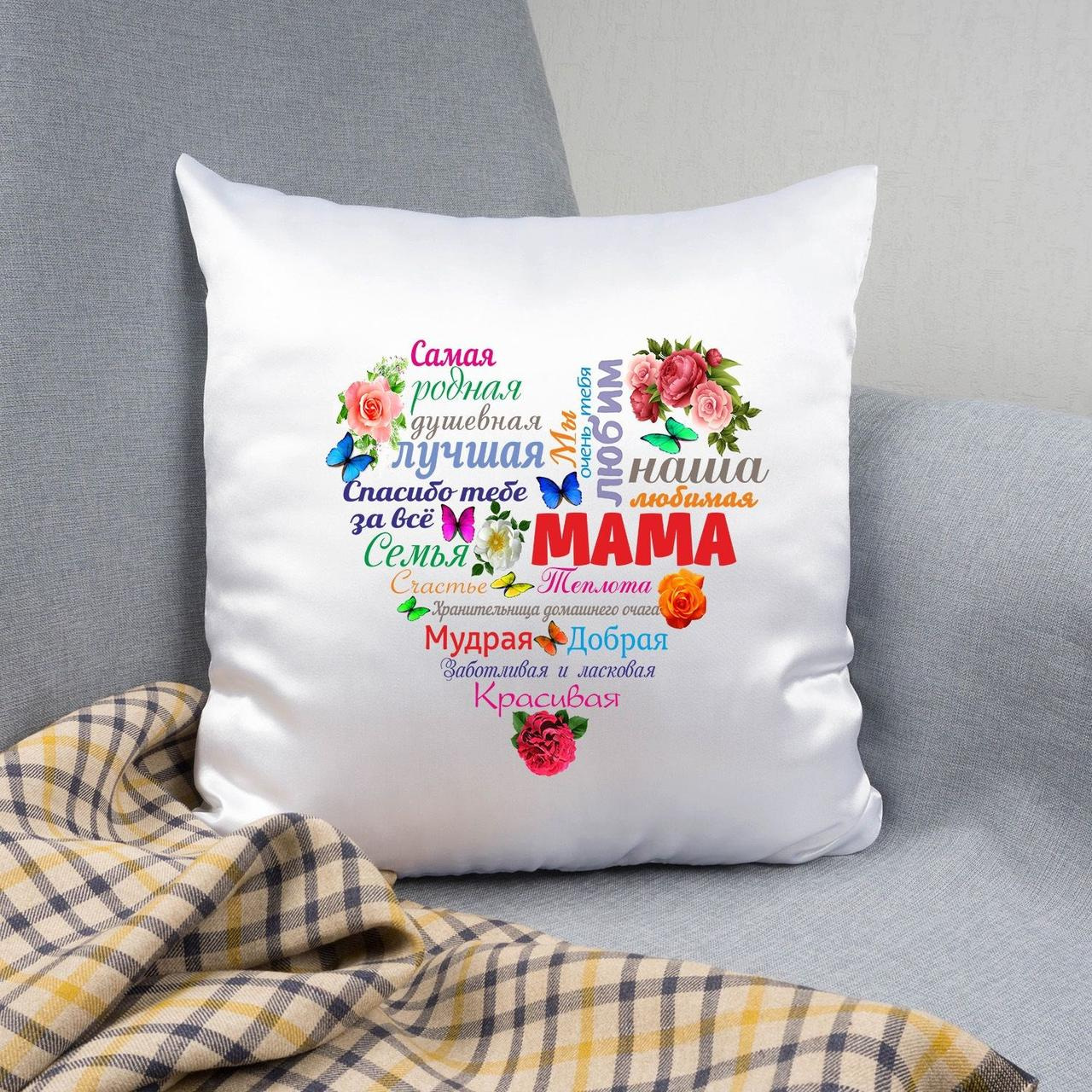 Описание Подушка декоративная с принтом "Мама сердце" Белый Кавун П000238