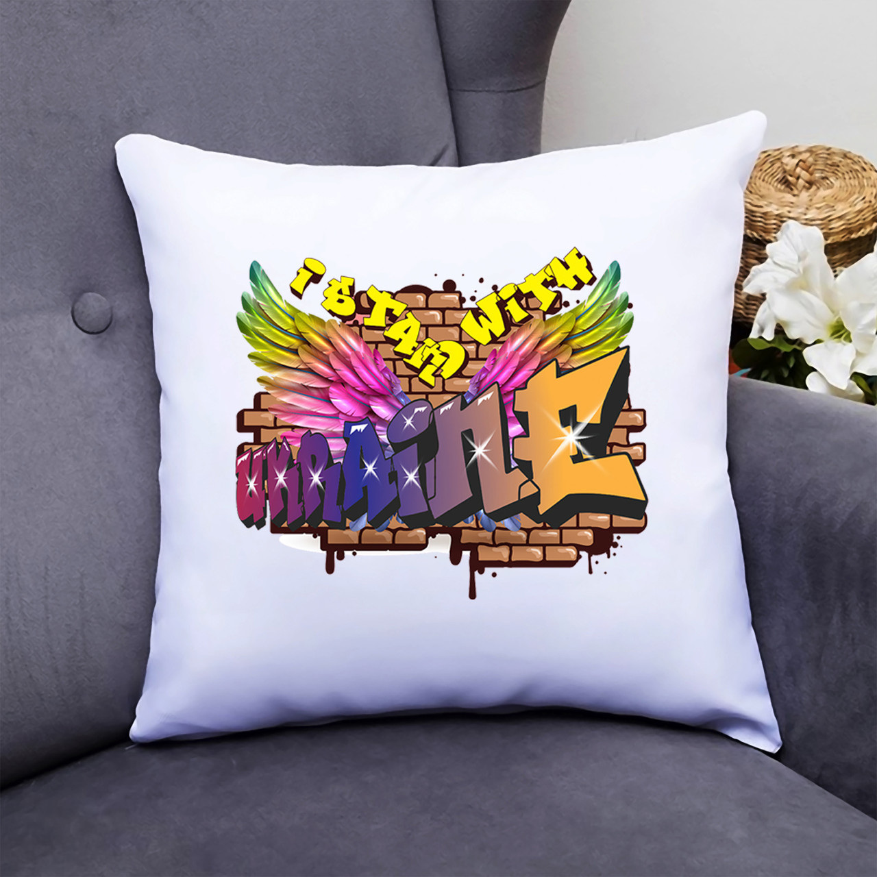 Описание Подушка декоративная с принтом "Is than with Ukraine" Белый Кавун П000355