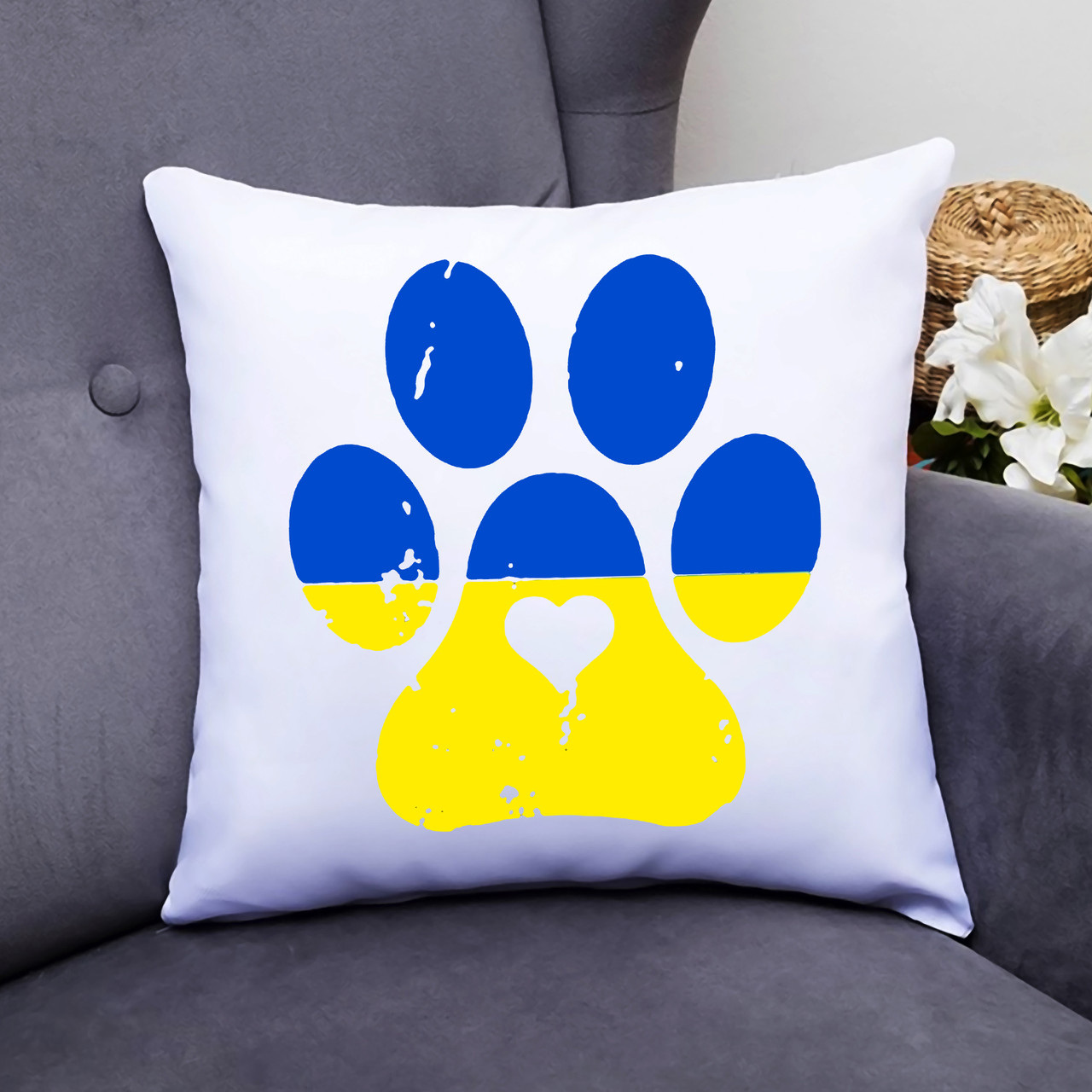 Описание Подушка декоративная с принтом "Отпечаток лапы в расцветке украинского флага" Белый Кавун П000416