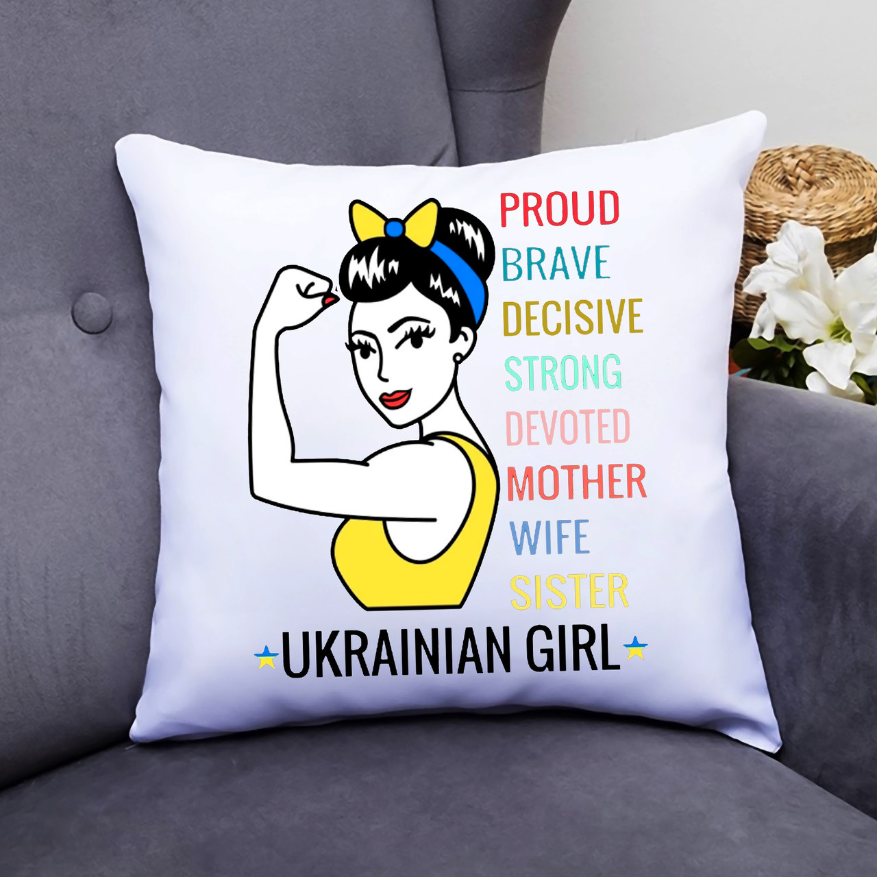 Подушка декоративная с принтом "Ukrainian girl" Белый Кавун П000418