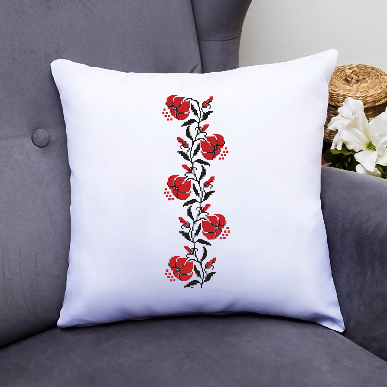 Описание Подушка декоративная с принтом "Стебель с красными цветами" Push IT Белый Кавун П000463
