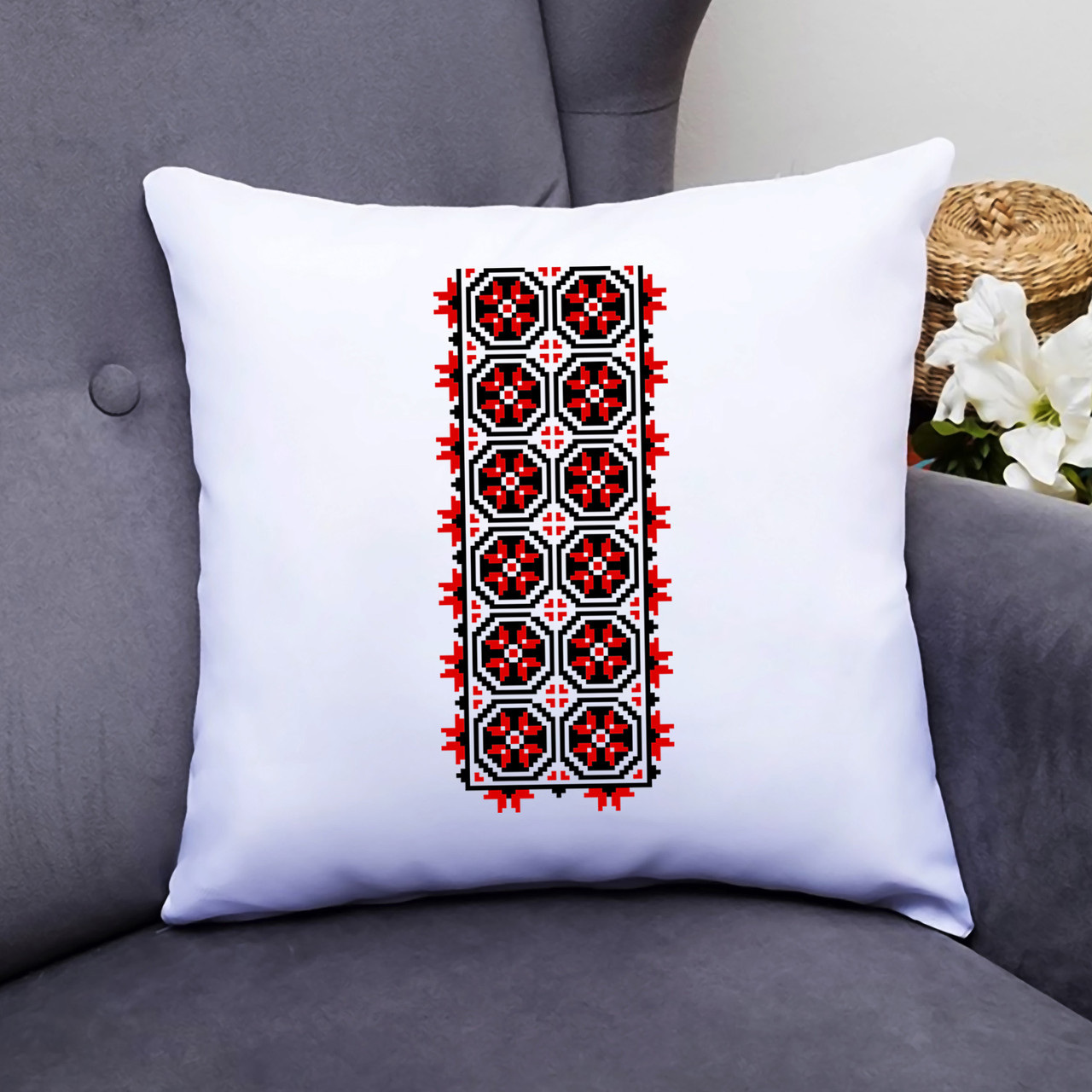 Описание Подушка декоративная с принтом "Украинский красный орнамент" Push IT Белый Кавун П000466