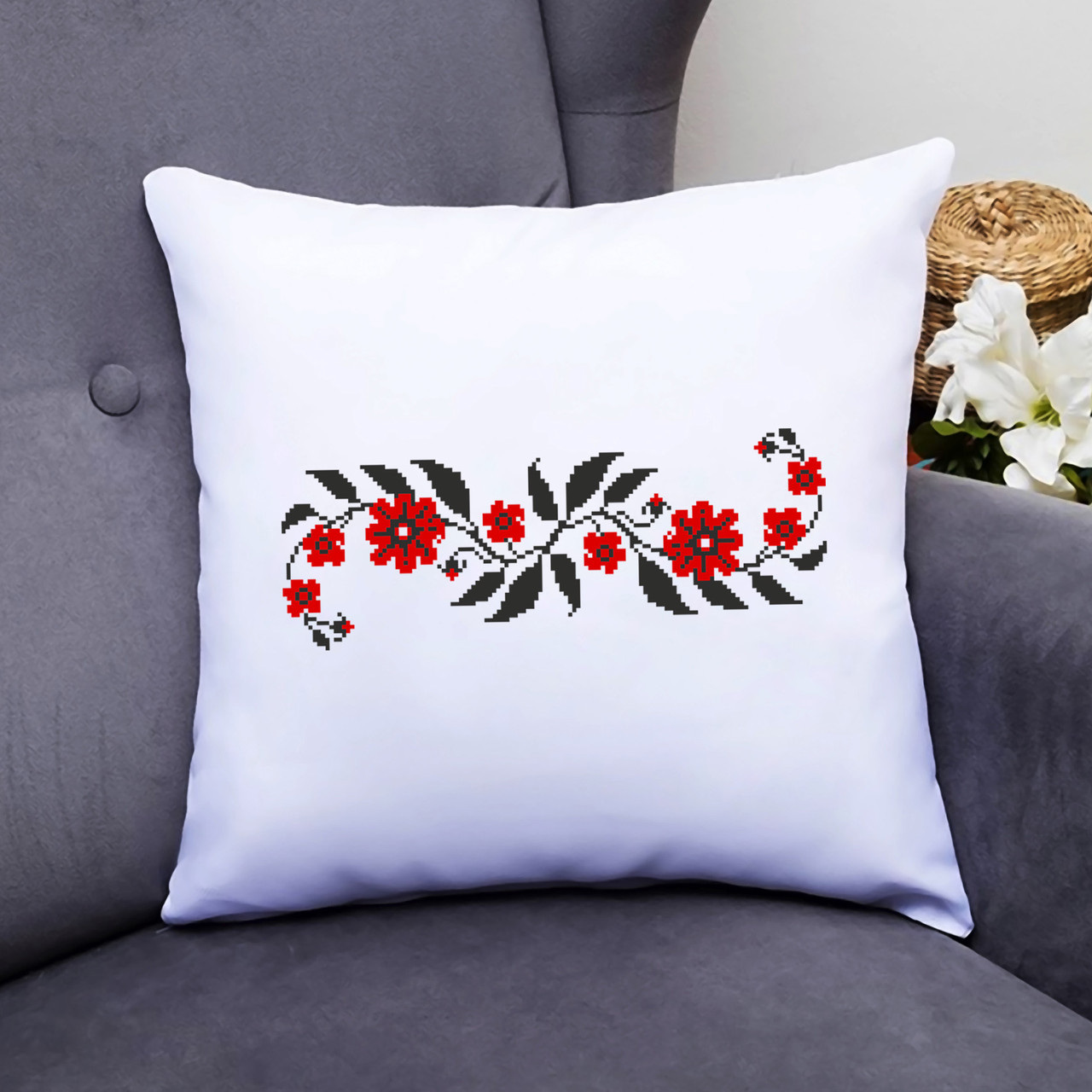 Описание Подушка декоративная с принтом "Горизонтальный цветочный орнамент" Push IT Белый Кавун П000473
