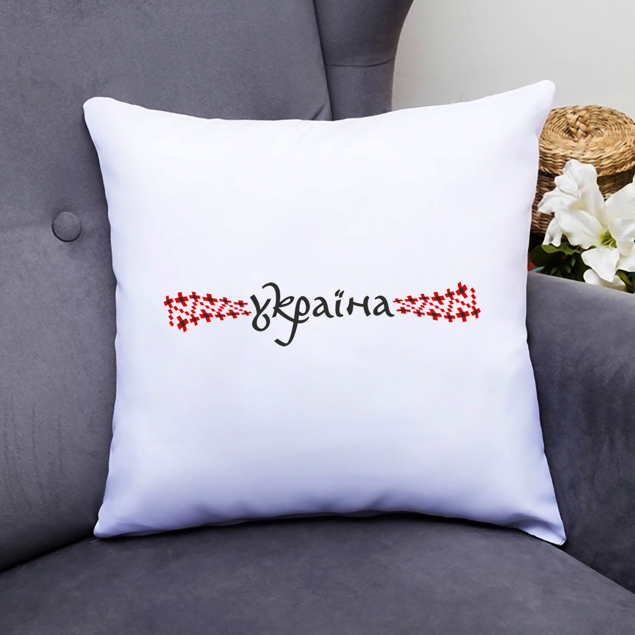Описание Подушка декоративная с принтом "Украина горизонтальная надпись" Push IT Белый Кавун П000476