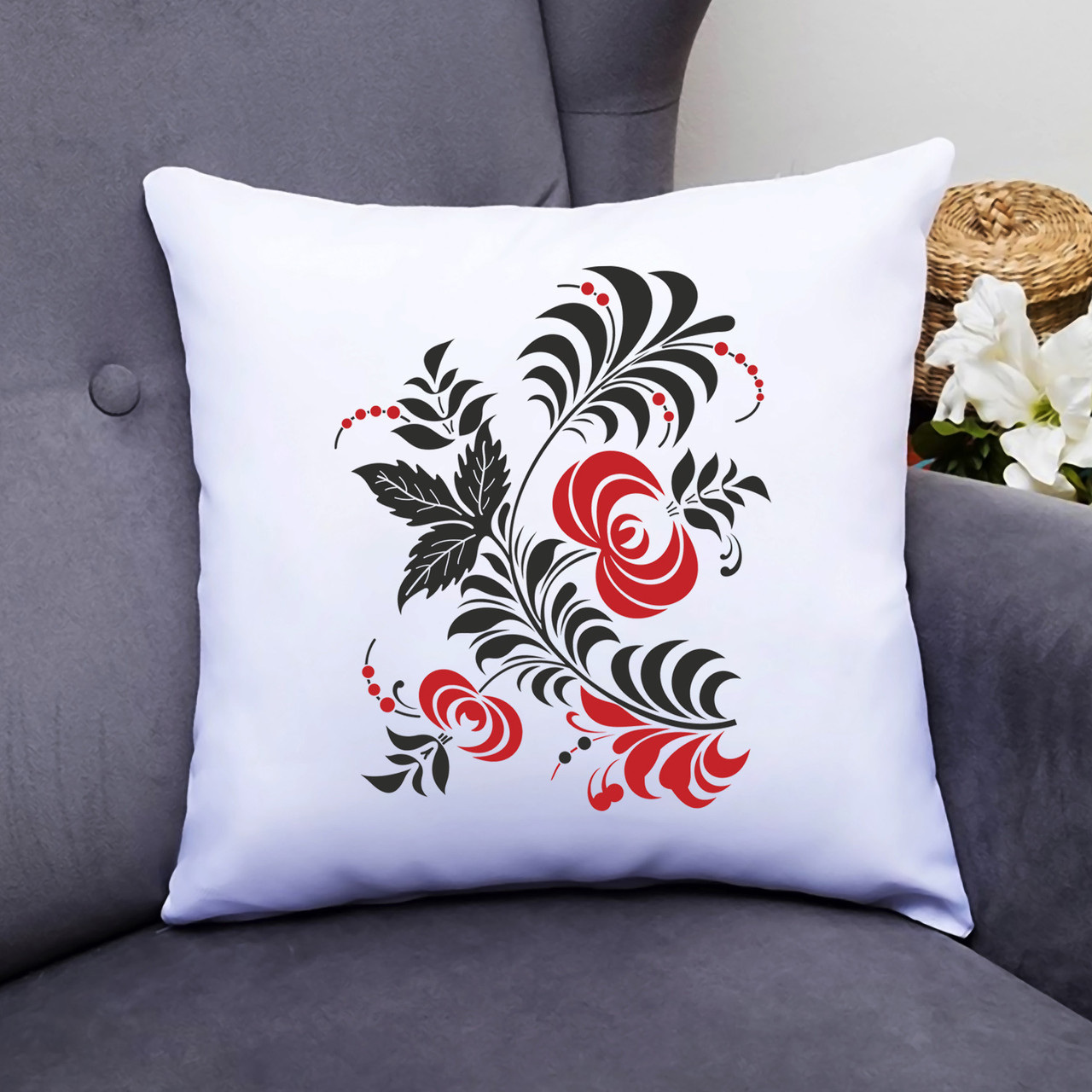 Описание Подушка декоративная с принтом "Красно-черная Петриковская роспись" Push IT Белый Кавун П000475