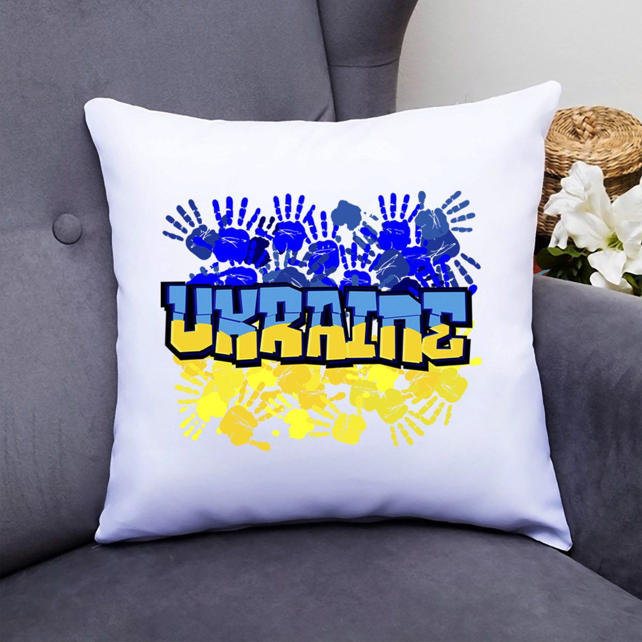 Описание Подушка декоративная с принтом "Ukraine синие и желтые отпечатки ладоней" Push IT Белый Кавун П000534