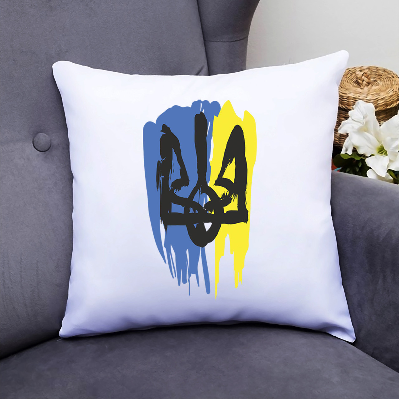 Подушка декоративная с принтом "Черный герб Украины на сине-желтом пятне" Push IT Белый Кавун П000537