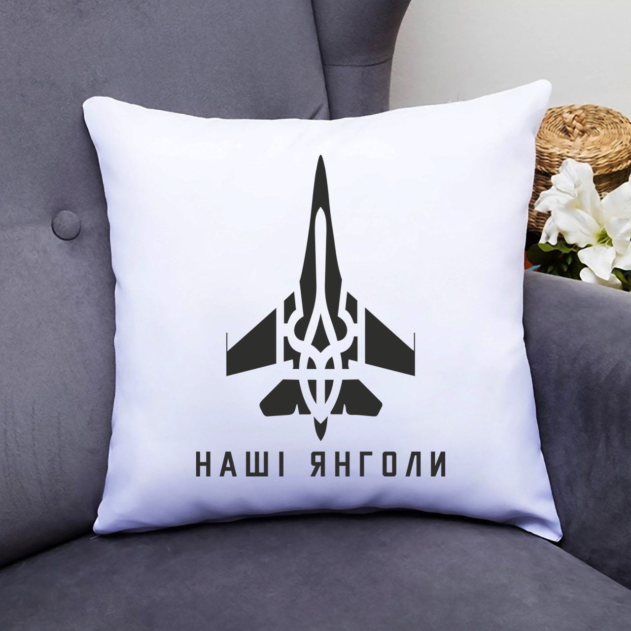 Подушка декоративная с принтом "Украинский самолет - Наши ангелы" Push IT Белый Кавун П000566