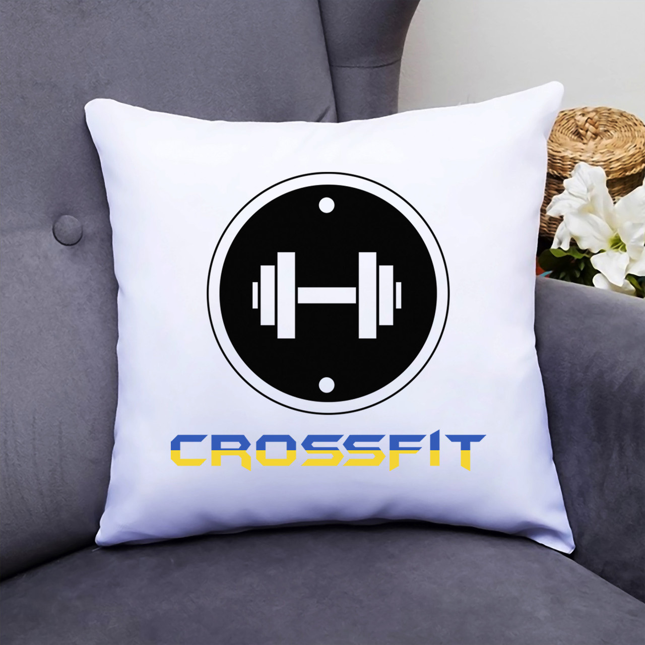 Подушка декоративная с принтом "Crossfit сине-желтая надпись" Push IT Белый Кавун П000645