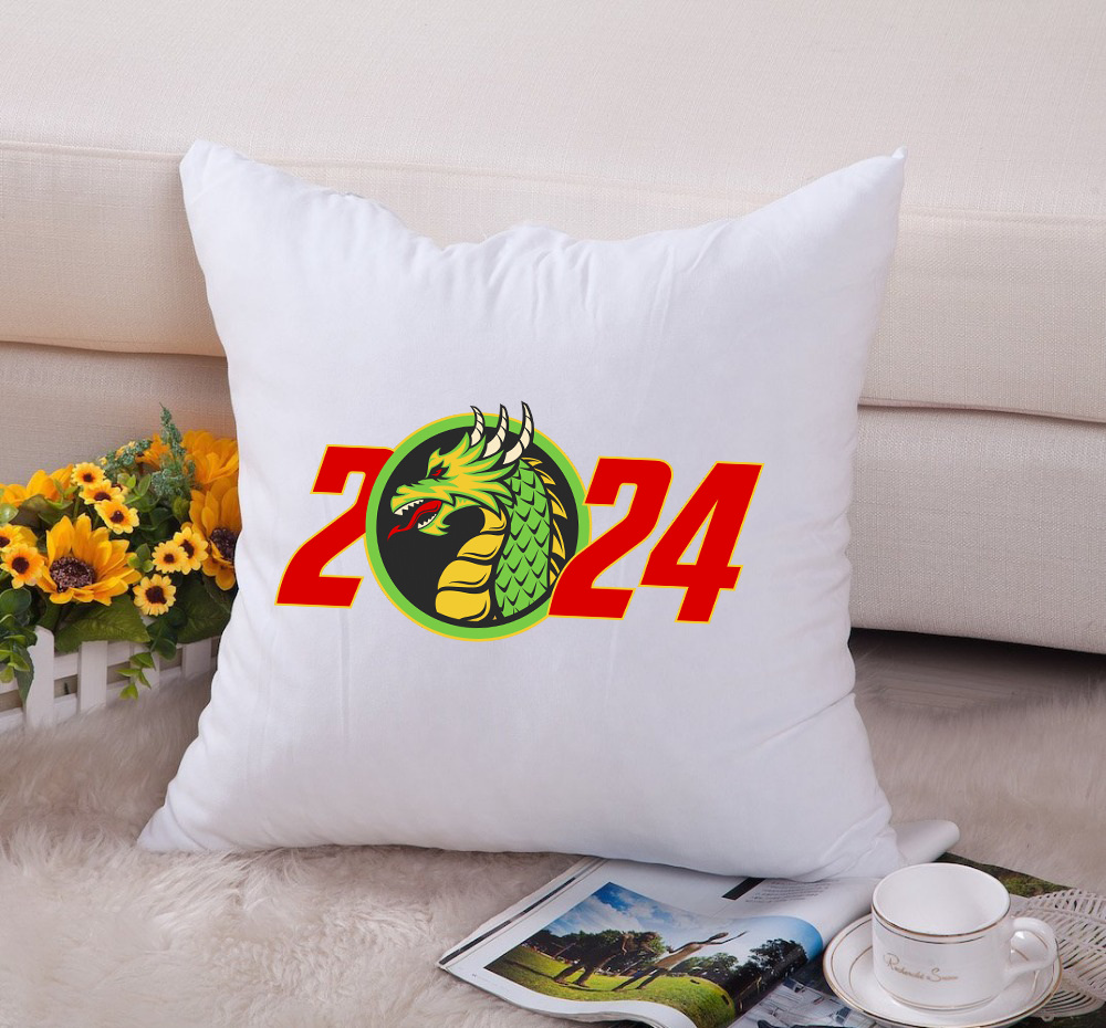 Описание Подушка декоративная с новогодним принтом "Дракон 2024. Dragon 2024" Push IT Белый Кавун П000713