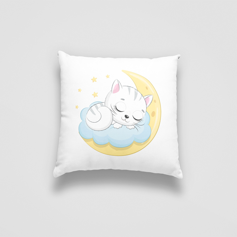 Подушка декоративная с принтом "Спящий белый котенок на луне. Sleeping cat" Push IT Белый Кавун П000730