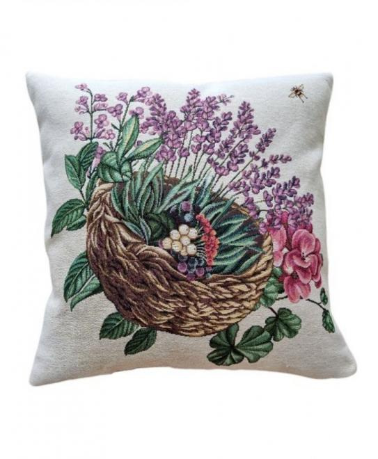 Наволочка декоративная Лавандовое поле Корзинка ла Прованс Разноцветный 45х45 см (1462)