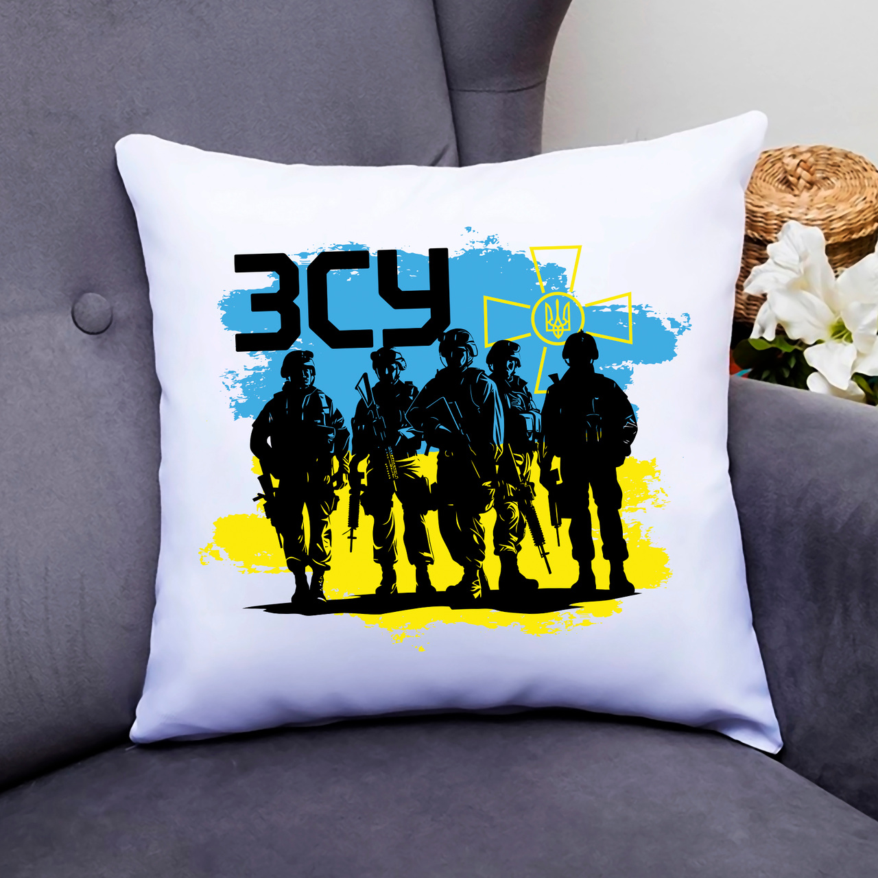 Подушка декоративная Кавун ЗСУ. Воїни на фоні українського флага 40x40 см (П000811)