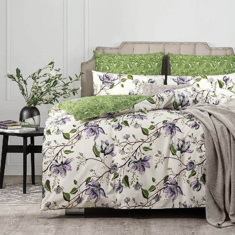 Характеристики товара Постельное белье Кот Муркот Евро с цветами 200х220 см Салатовый с белым (VD_Лісова_пісня_Є)