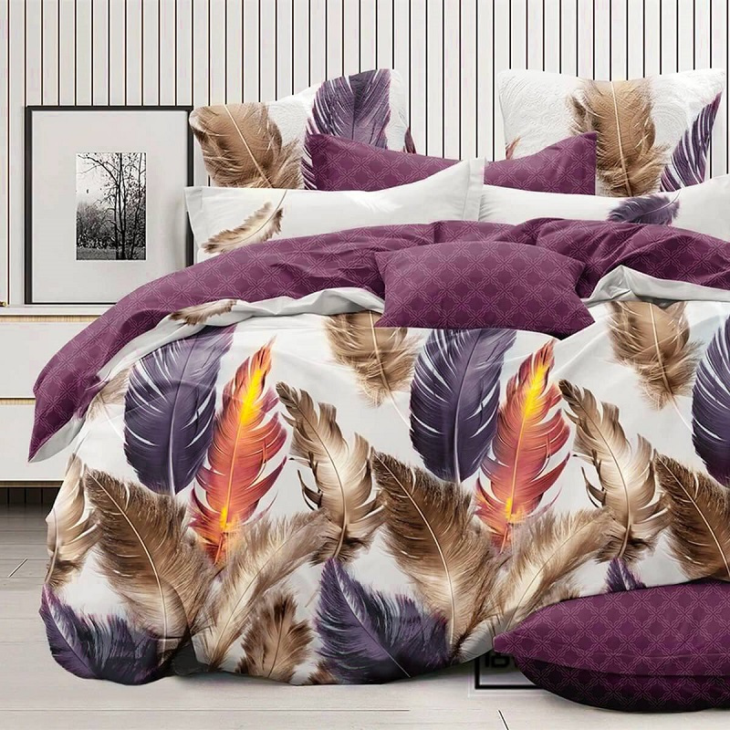 Постельное белье Кот Муркот Полуторный с яркими большими перьями 150х220 см Бело-фиолетовый (VD_Графиня_П)