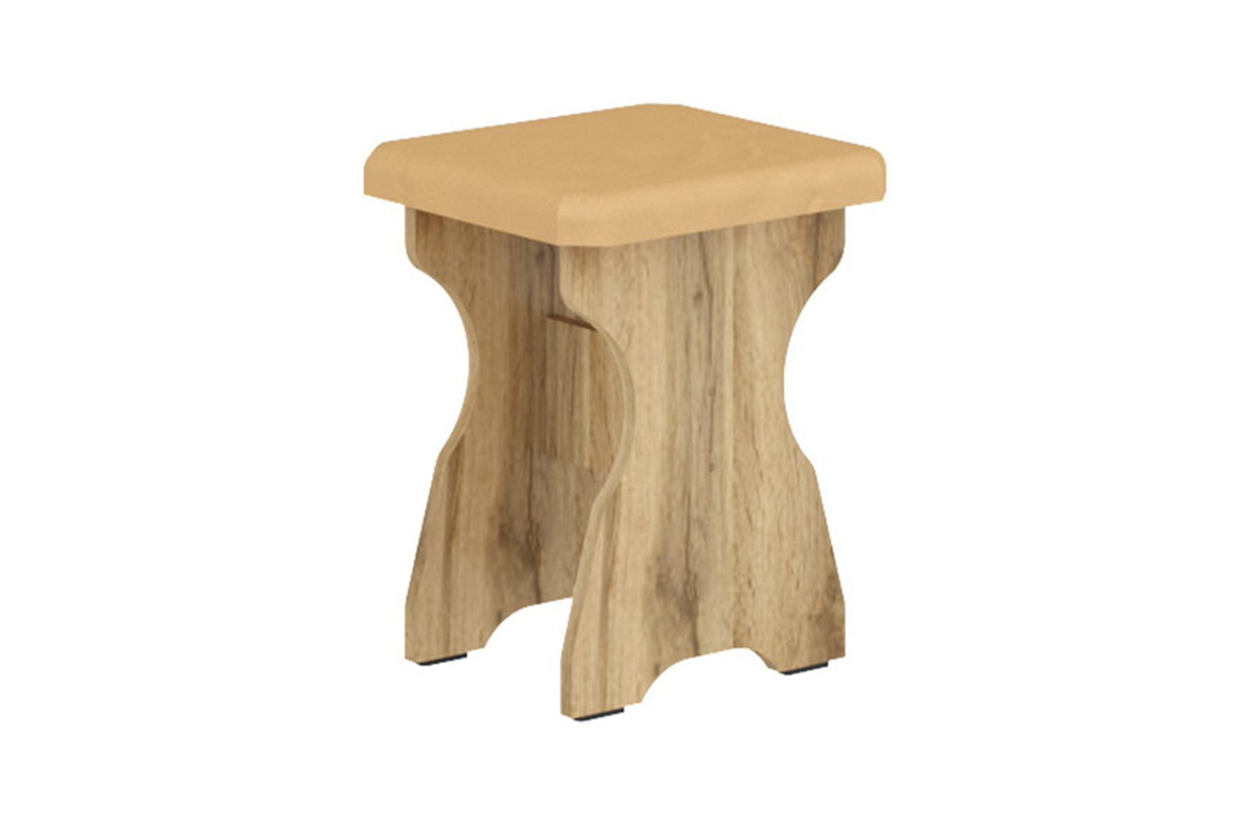 Табуретка має простий дизайн та класичний вигляд. ЇЇ особливістю є дві з’єднані між собою широкі ніжки, виготовлені з ламінованого ДСП. Це надає конструкції додаткової стабільності. Ламіноване покриття ніжок забезпечує легкість догляду і захист від подряпин та інших пошкоджень.