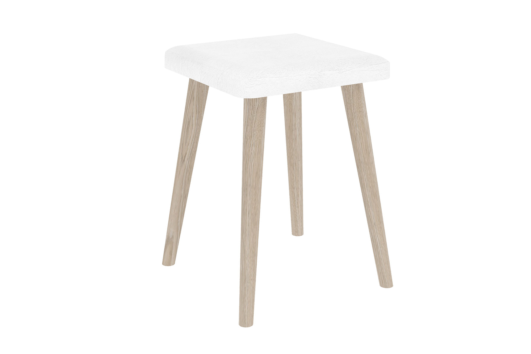 Чотири конічні ніжки виготовлені з масиву дерева світлого кольору, що додають легкості і природності зовнішньому вигляду. Сидіння квадратної форми, вкрите якісним замінником шкіри або меблевою тканиною теплого відтінку, створює комфорт під час сидіння. Всі матеріали відзначаються легкістю у догляді.