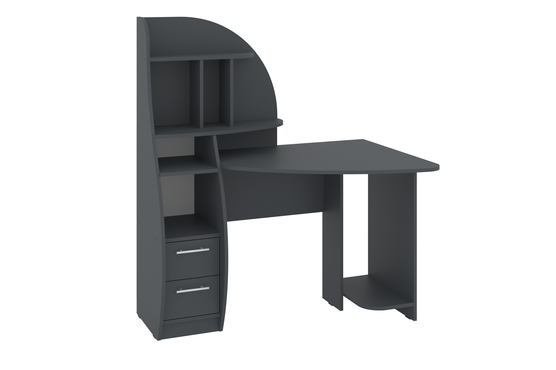 Стіл Elego забезпечує максимальну зручність і організацію робочого простору. З одного боку столу розташовані дві шухлядки внизу, що дозволяють зберігати важливі документи, канцелярське приладдя та інші необхідні речі під рукою. Над шухлядками розміщені полиці, на яких можна зручно розмістити книги, папки, декор або техніку.