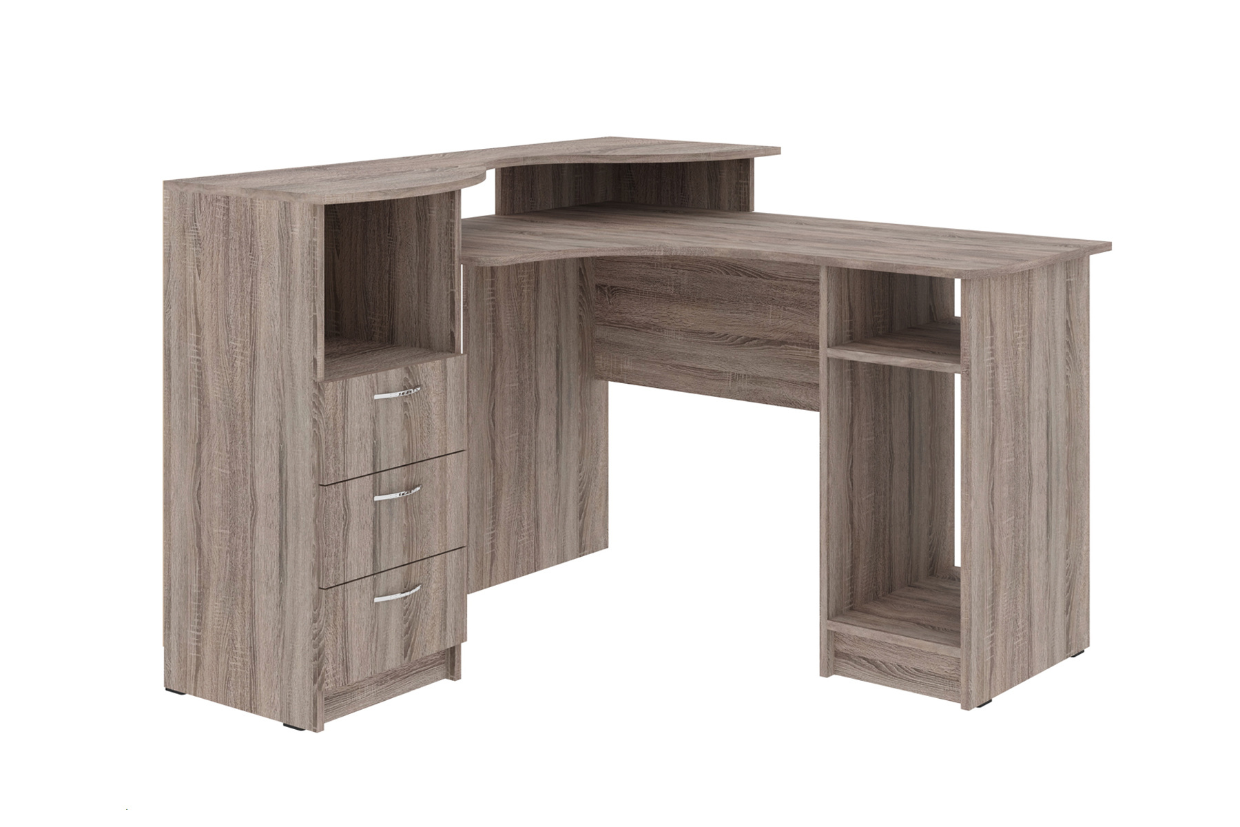 Кутовий комп'ютерний стіл – підходяще рішення для організації робочого простору вдома або в офісі. Стіл оснащений полицею для монітора, яка розташована над стільницею, що дозволяє максимально ефективно використовувати простір і зберігати робочу зону вільною. Під стільницею передбачене спеціальне місце для системного блоку, що забезпечує зручний доступ до нього і водночас зберігає його в безпеці.