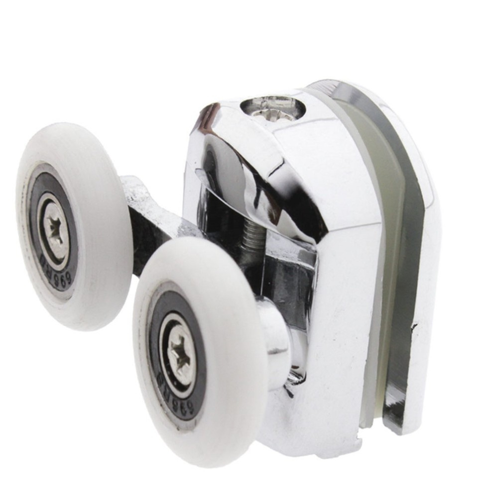 Ролик для душевой кабины и душевого бокса (M-02 B) двойной, верхний, пластиковый, поворотный, регулируемый для душевой кабины и гидробокса. С диаметром колеса от 19 мм. до 28 мм. Корпус пластиковый, поворотный, вагонка с колесами крепится к корпусу ролика регулировочным болтом. Колесо съемное крепится к вагонетке болтом. Посадочные детали изготовлены из пластика, что предотвращает повреждение стекла при установке ролика. При подборе ролика нужно точно знать наружный диаметр колеса. Возможна установка колеса диаметром от 19 до 28 мм.