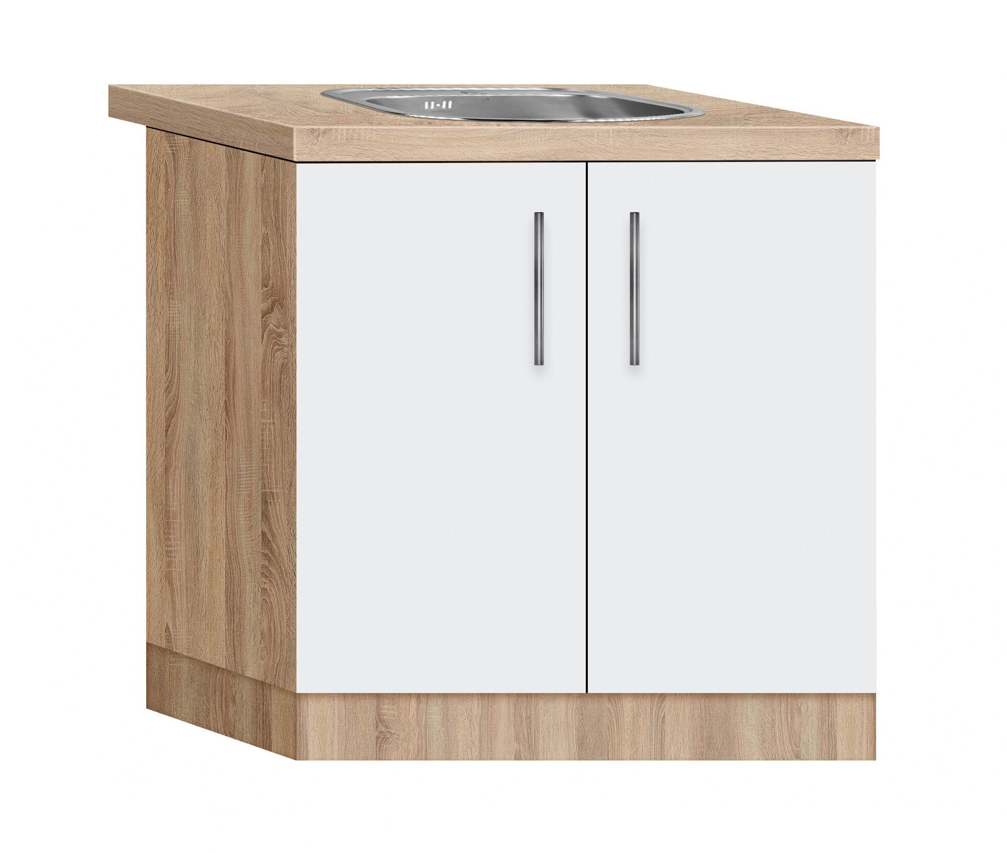 Тумба-мойка (двухдверная) с врезной мойкой (прямоугольная декор) МАКСИ-МЕбель изготавливается в цветах: дуб трюфель, венге магия, дуб молочный, яблоня локарна, дуб сонома, белая (гладкая), белая (структура), ваниль, бук, орех лесной, ольха, серая (пепел) и их сочетаниях (без доплаты). Для заказа изделия в цвете, отличном от указанного в названии товара, просим написать выбранный Вами цвет в любом комментарии к заказу. Столешницу можно выбрать любую из представленных на фото.