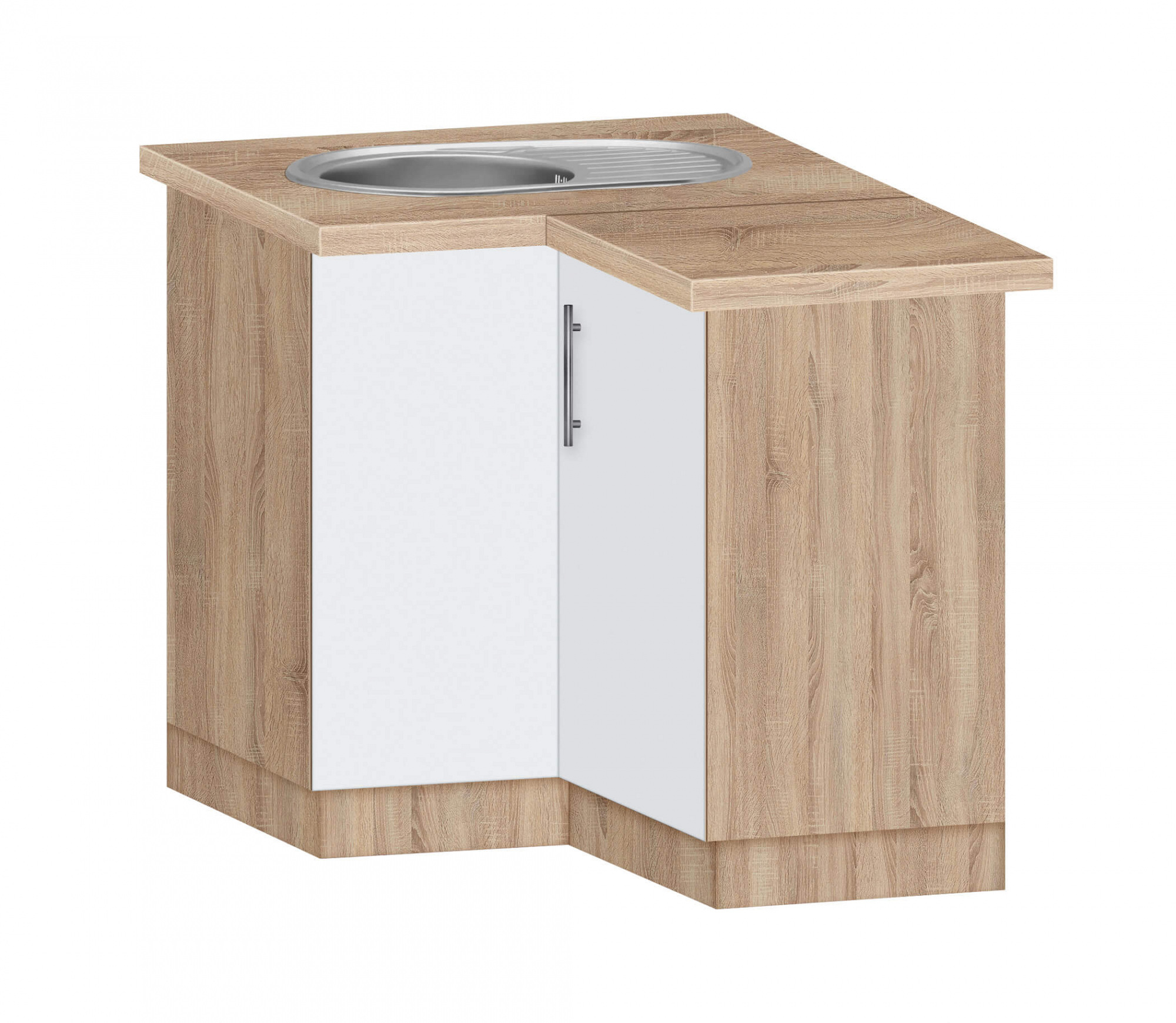 Тумба угловая кухонная №2 с врезной мойкой (овальная декор) МАКСИ-МЕбель изготавливается в цветах: дуб трюфель, венге магия, дуб молочный, яблоня локарна, дуб сонома, белая (гладкая), белая (структура), ваниль, бук, орех лесной, ольха, серая (пепел) и их сочетаниях (без доплаты). Для заказа изделия в цвете, отличном от указанного в названии товара, просим написать выбранный Вами цвет в любом комментарии к заказу. Столешницу можно выбрать любую из представленных на фото.
