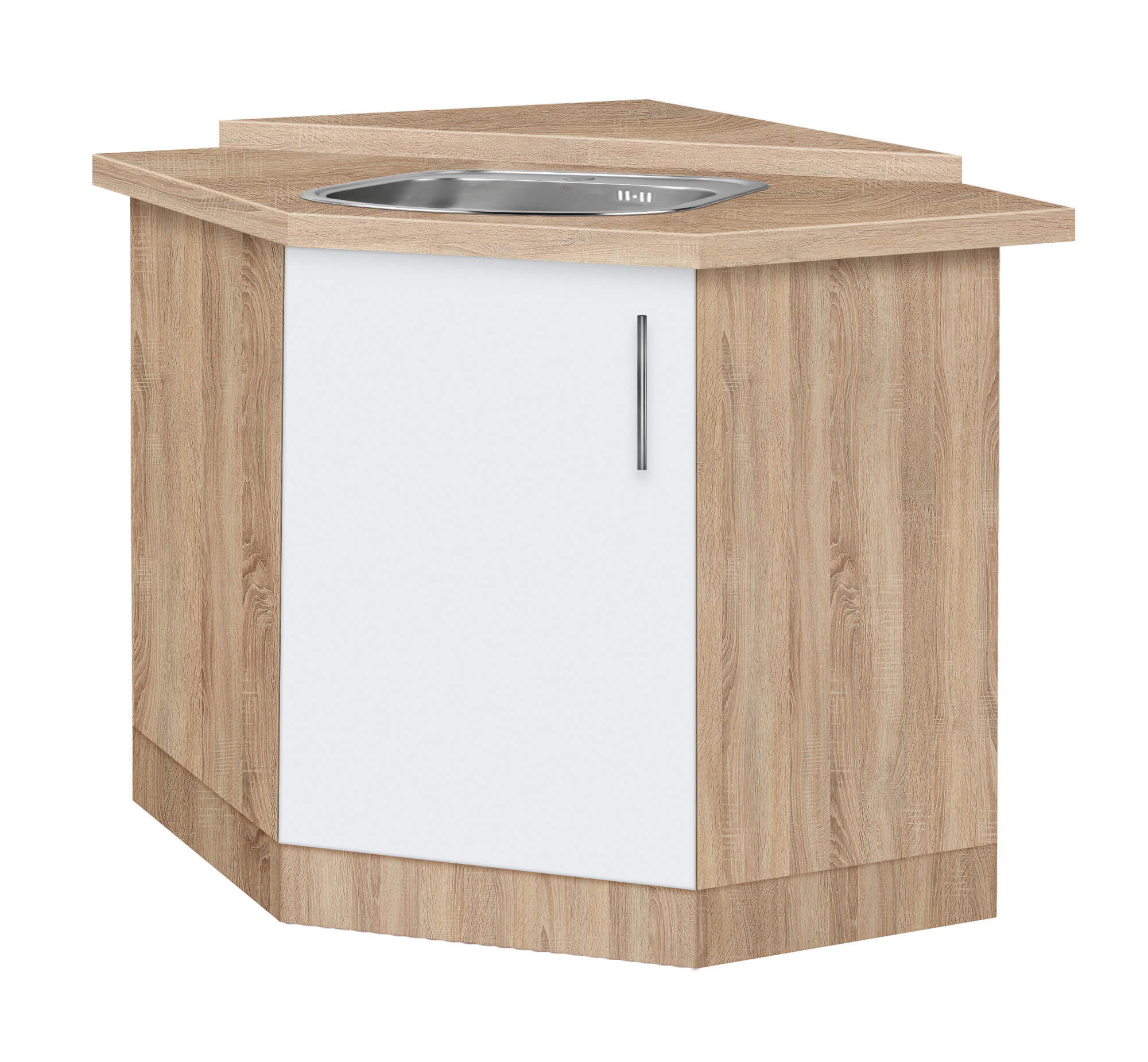 Тумба угловая кухонная №1 с врезной мойкой (квадрат сатин) МАКСИ-МЕбель изготавливается в цветах: дуб трюфель, венге магия, дуб молочный, яблоня локарна, дуб сонома, белая (гладкая), белая (структура), ваниль, бук, орех лесной, ольха, серая (пепел) и их сочетаниях (без доплаты). Для заказа изделия в цвете, отличном от указанного в названии товара, просим написать выбранный Вами цвет в любом комментарии к заказу. Столешницу можно выбрать любую из представленных на фото.