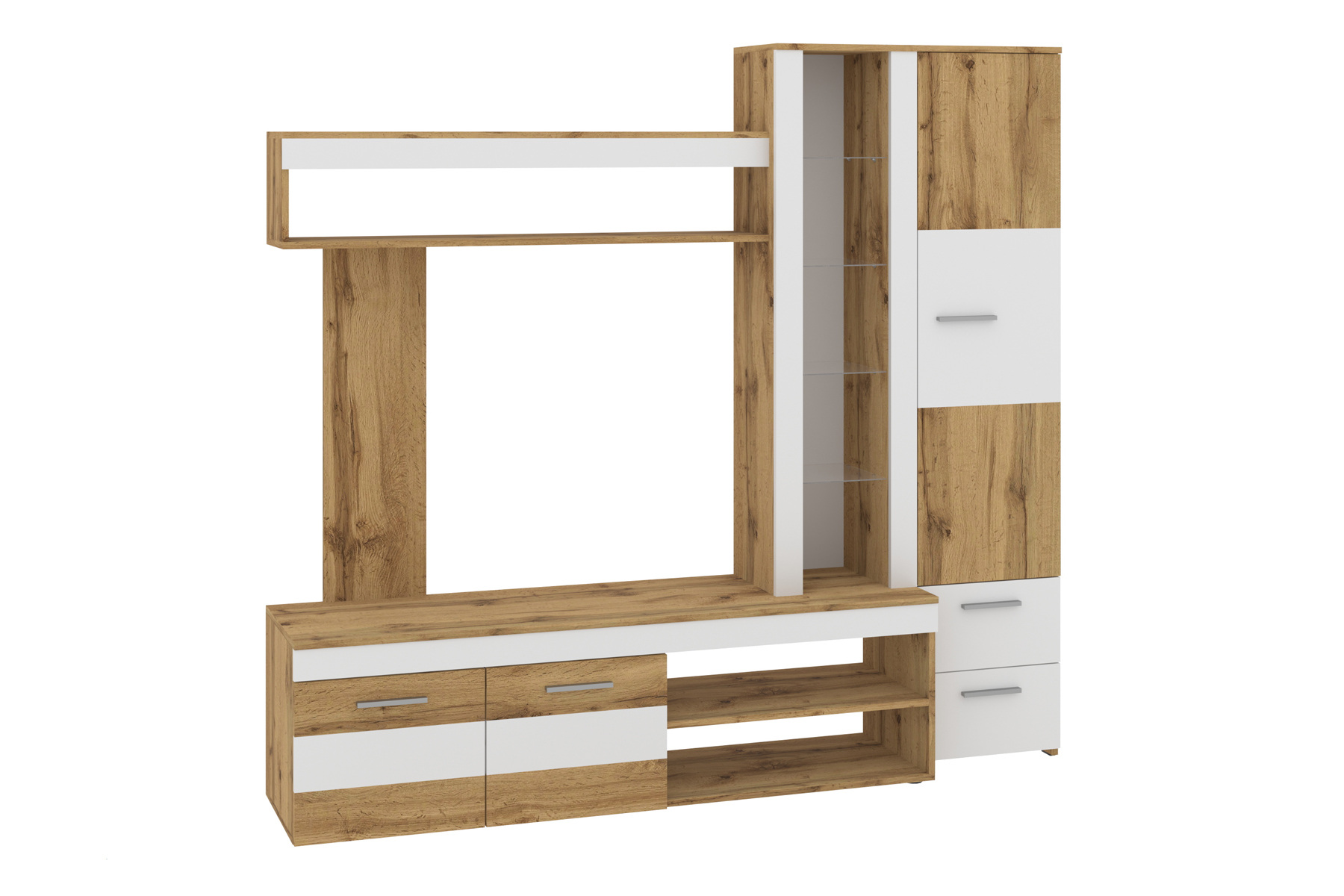 Права частина набору представлена високою шафою з дверцятами. Усередині шафи розташовані кілька полиць для зберігання. Під основним відділенням шафи знаходяться два висувні ящики. Центральний блок набору включає в себе два відкриті відділення, розташовані нижче. Вище розташована горизонтальна полиця, яка створює додатковий простір для розміщення декоративних предметів або електроніки.