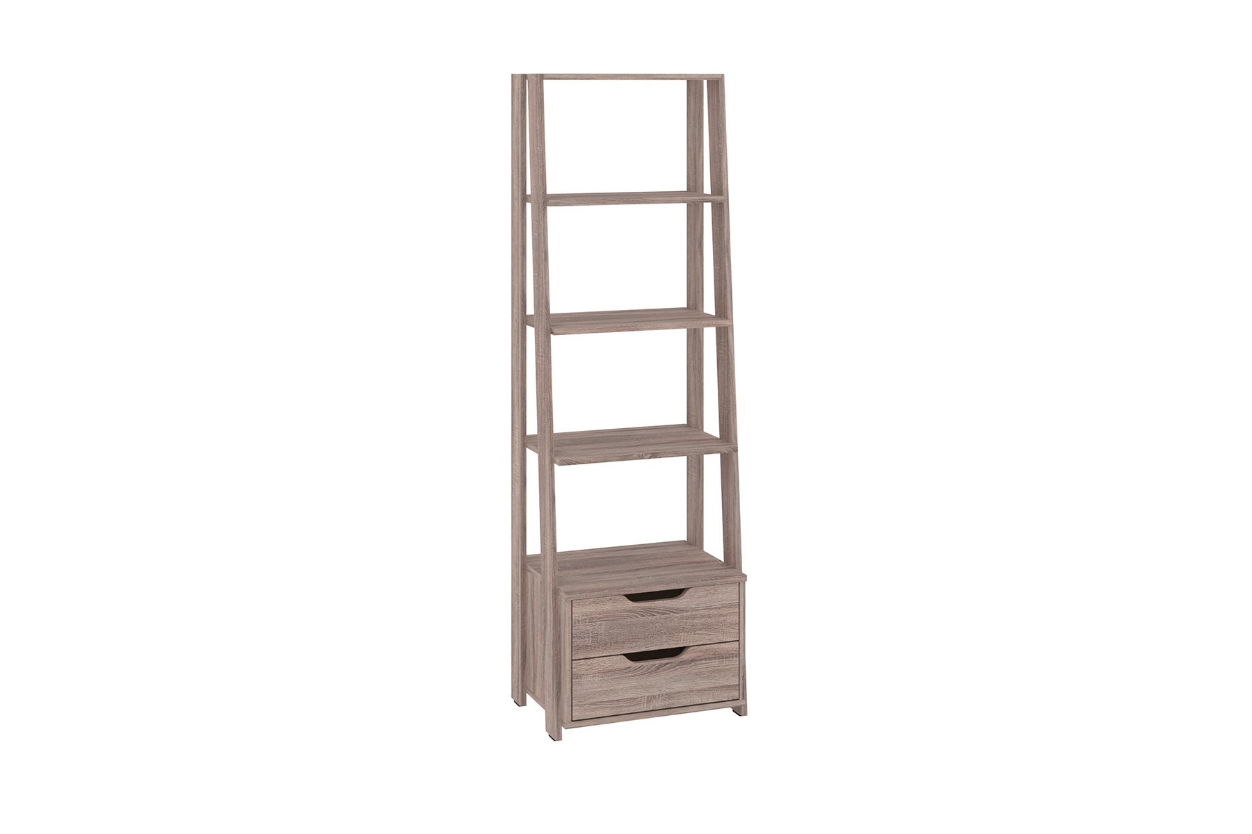 Стелаж оснащений чотирма відкритими полицями, які підходять для розміщення книг, декоративних предметів, рослин чи інших аксесуарів. Нижня частина стелажу містить дві висувні шухляди, які забезпечують додаткове місце для зберігання речей, що повинні залишатися поза увагою.