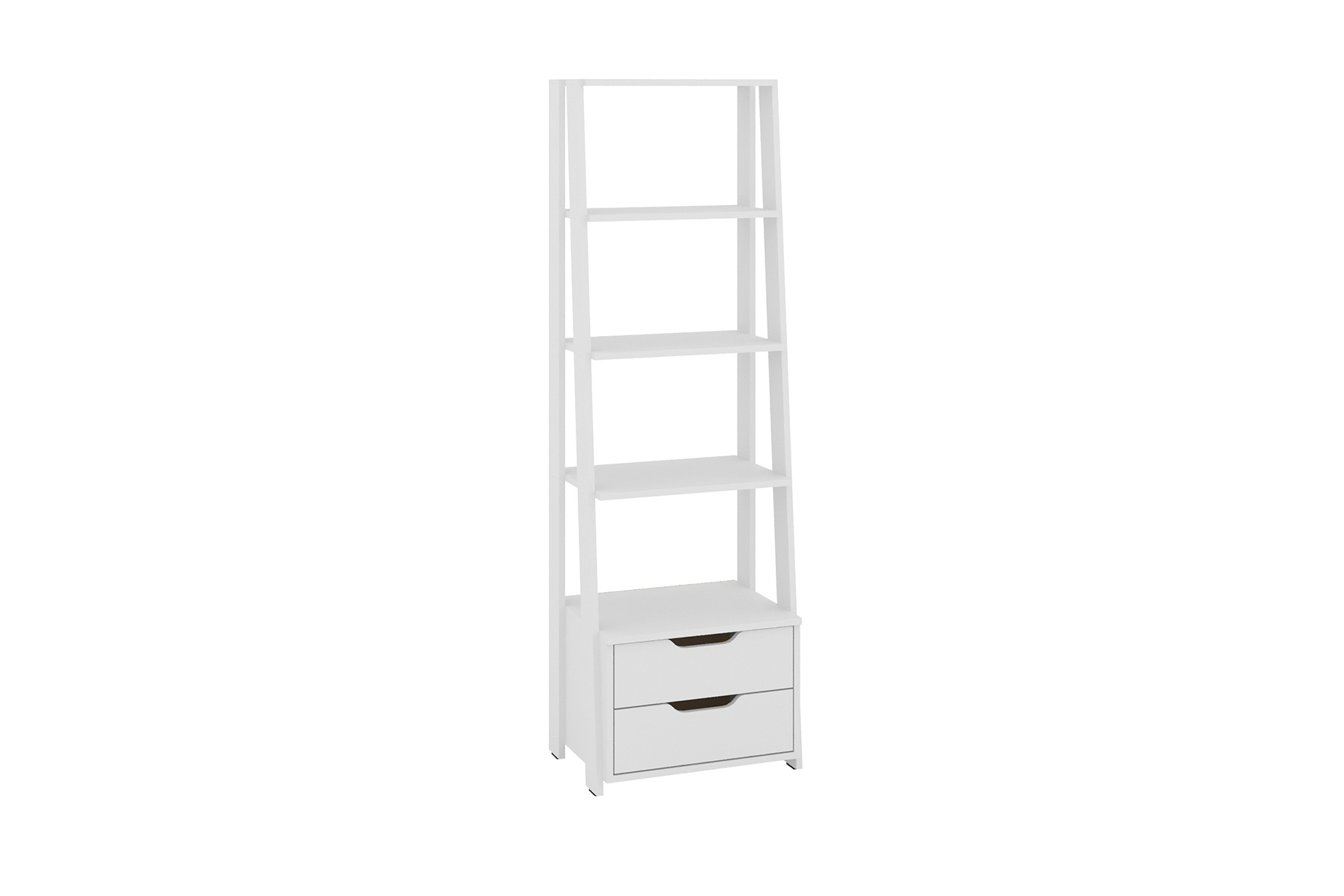 Стелаж оснащений чотирма відкритими полицями, які підходять для розміщення книг, декоративних предметів, рослин чи інших аксесуарів. Нижня частина стелажу містить дві висувні шухляди, які забезпечують додаткове місце для зберігання речей, що повинні залишатися поза увагою.