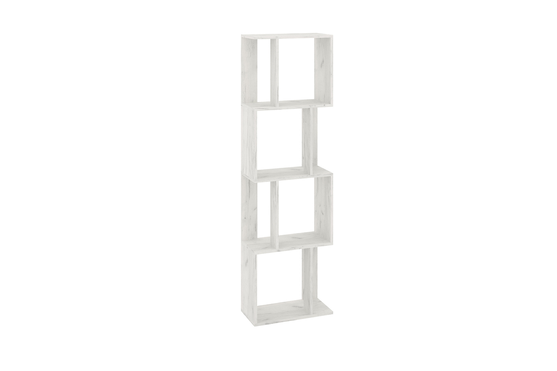 Стелаж складається з чотирьох квадратних відділів, розташованих у нестандартному порядку, що надає йому оригінального вигляду. Його матеріал і текстура нагадують натуральне дерево, тому він оптимально впишеться як у сучасний інтер’єр, так і в більш класичний та традиційний простір.