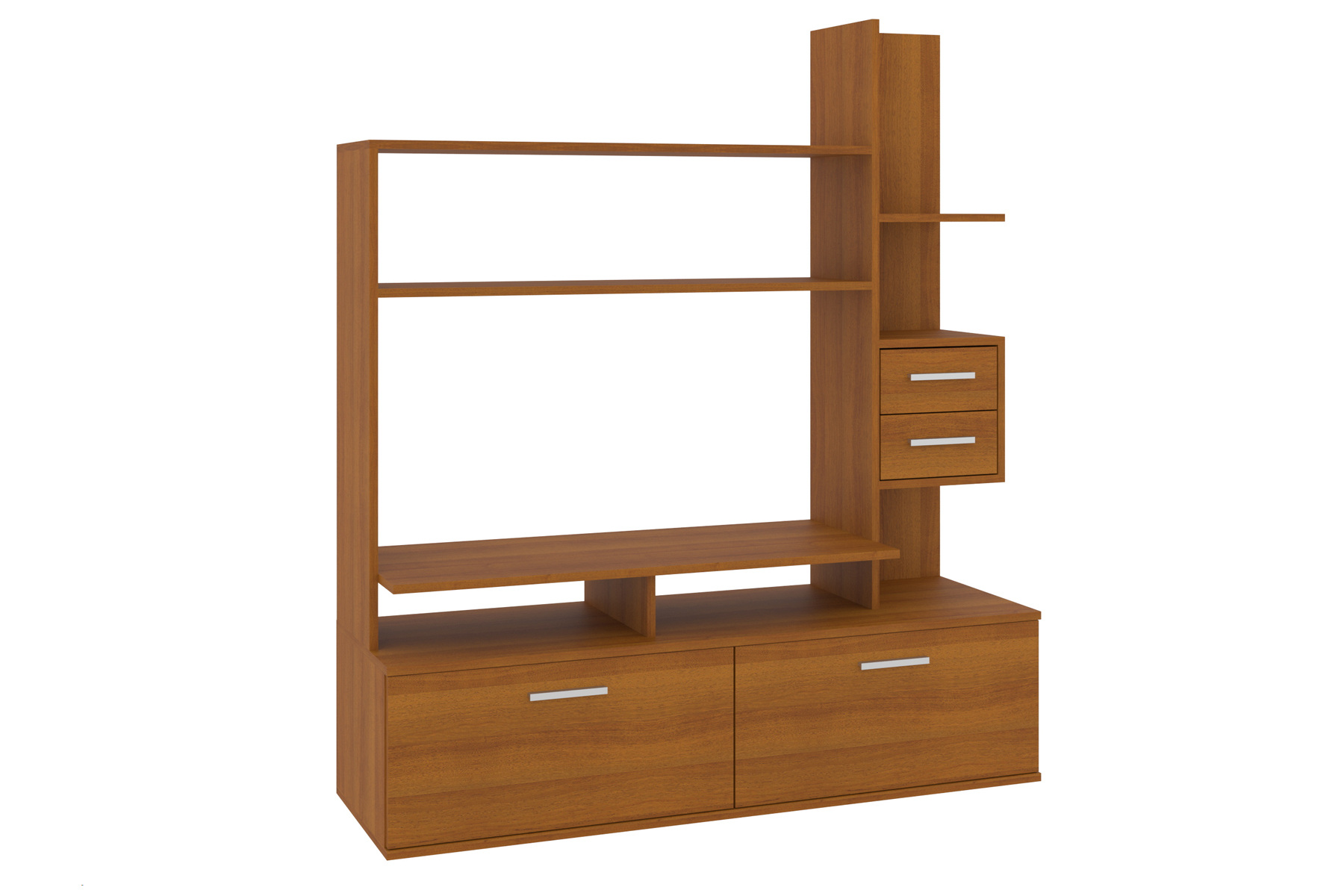 Верхня частина меблевого набору складається з двох відкритих горизонтальних полиць, розташованих одна над одною. Вони додають інтер'єру деякої легкості. Праворуч розташований вертикальний модуль з двома висувними ящиками. Цей модуль забезпечує додаткове місце для зберігання дрібних речей. Ящики розміщені на середньому рівні, що дозволяє легко діставати потрібні предмети.