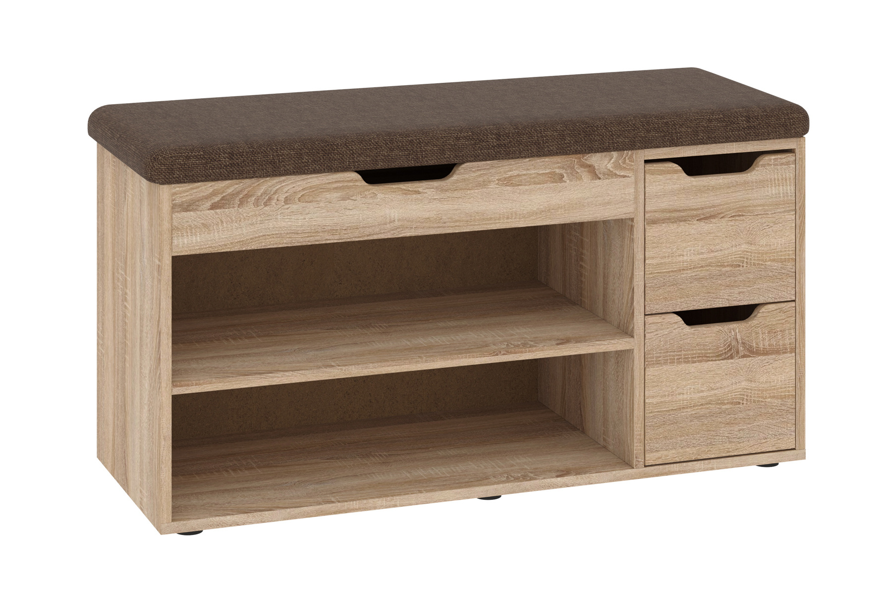 Описание Тумба для взуття з сидінням Quadro (100х38х50 см, сонома + савана браун)