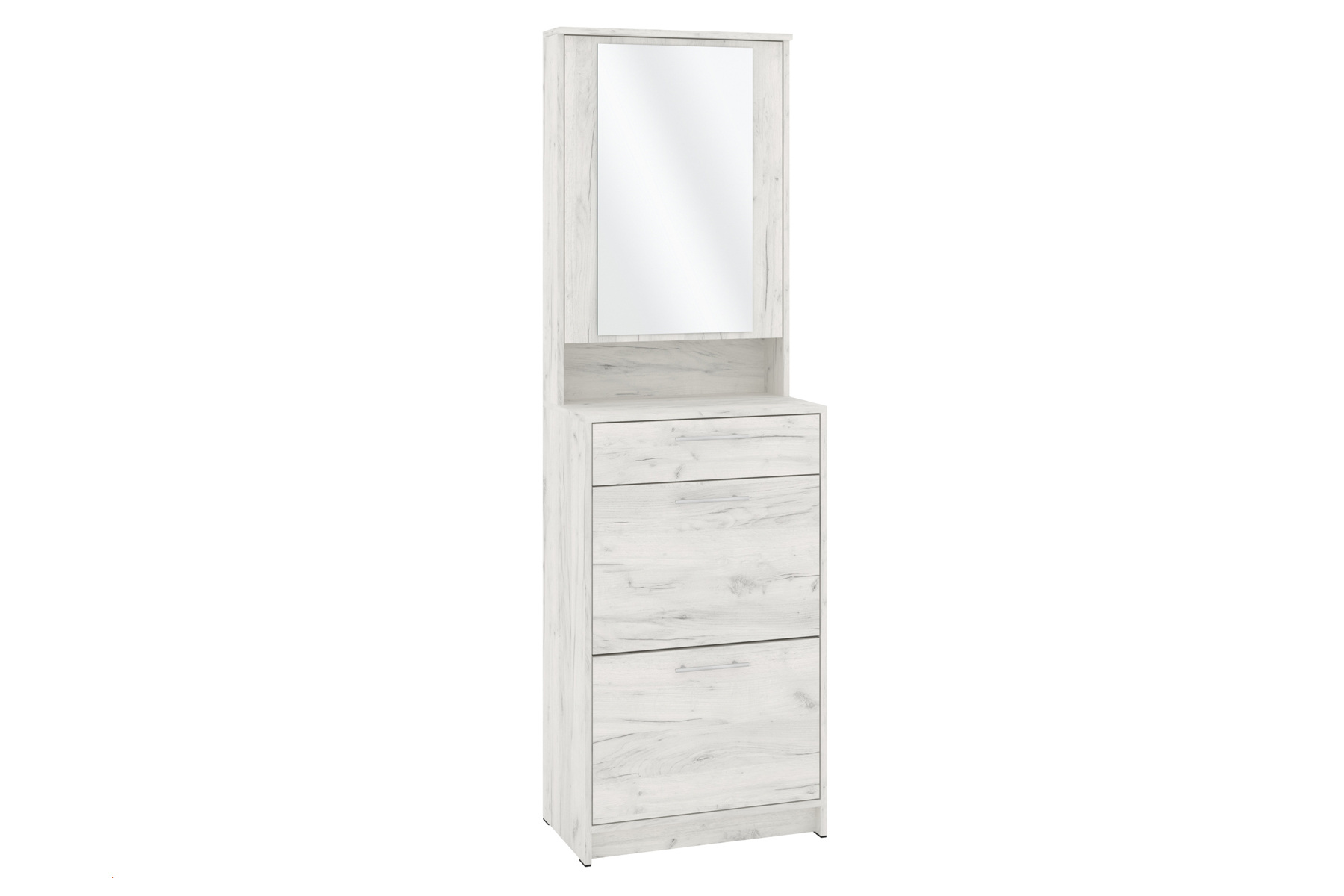 Ця тумба для взуття є класичною моделлю. ЇЇ компактні розміри дозволяють зручно розміститись навіть у невеликому передпокої. Вона складається з двох основних частин: нижнього блоку для зберігання взуття та верхнього блоку з дзеркалом. Воно не лише має практичне значення, а і створює візуальний ефект для збільшення простору.