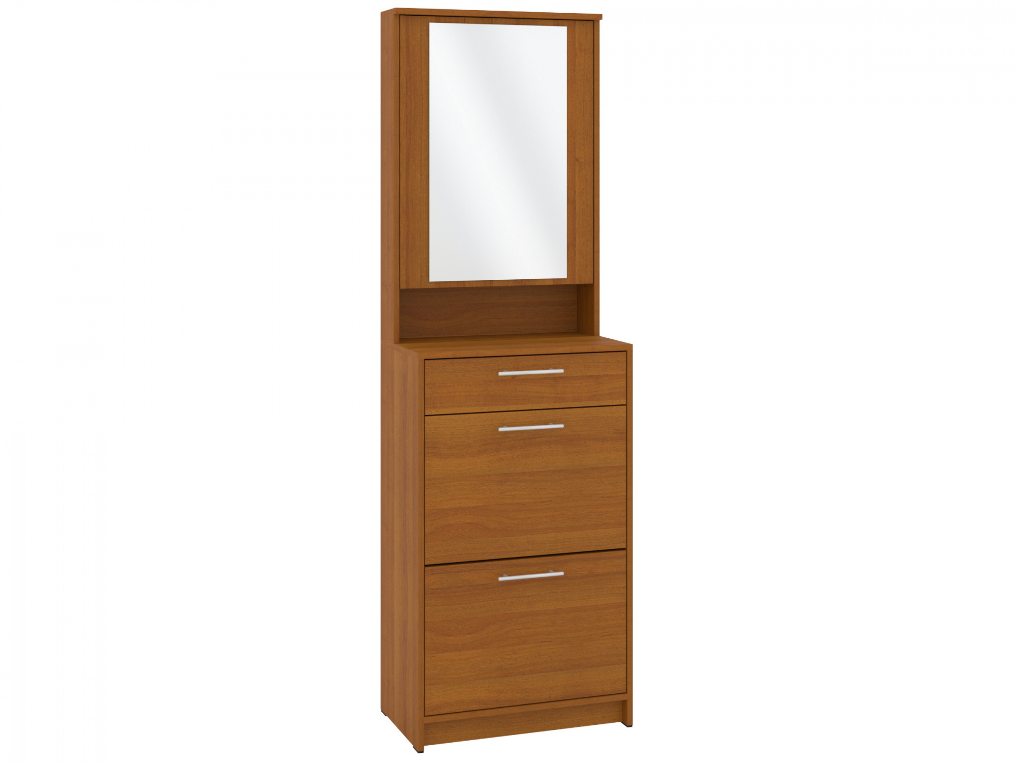 Ця тумба для взуття є класичною моделлю. ЇЇ компактні розміри дозволяють зручно розміститись навіть у невеликому передпокої. Вона складається з двох основних частин: нижнього блоку для зберігання взуття та верхнього блоку з дзеркалом. Воно не лише має практичне значення, а і створює візуальний ефект для збільшення простору.