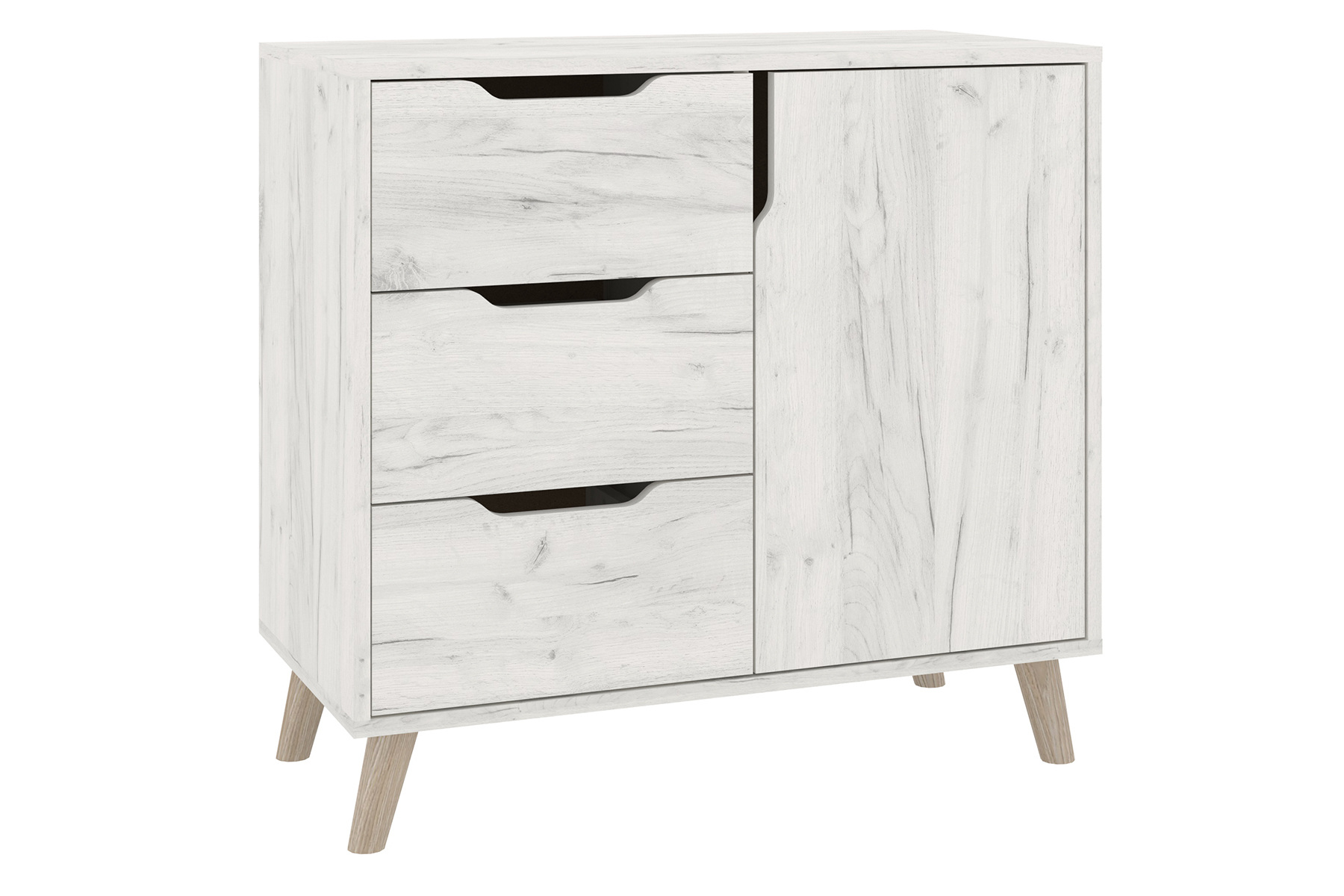 Цей комод оптимально поєднує практичність і елегантність скандинавського дизайну – він має нейтральні світлі кольори та не відволікає на себе зайву увагу від інших елементів інтер'єру. Його можна спокійно використовувати у малогабаритних кімнатах завдяки невеликим розмірам.