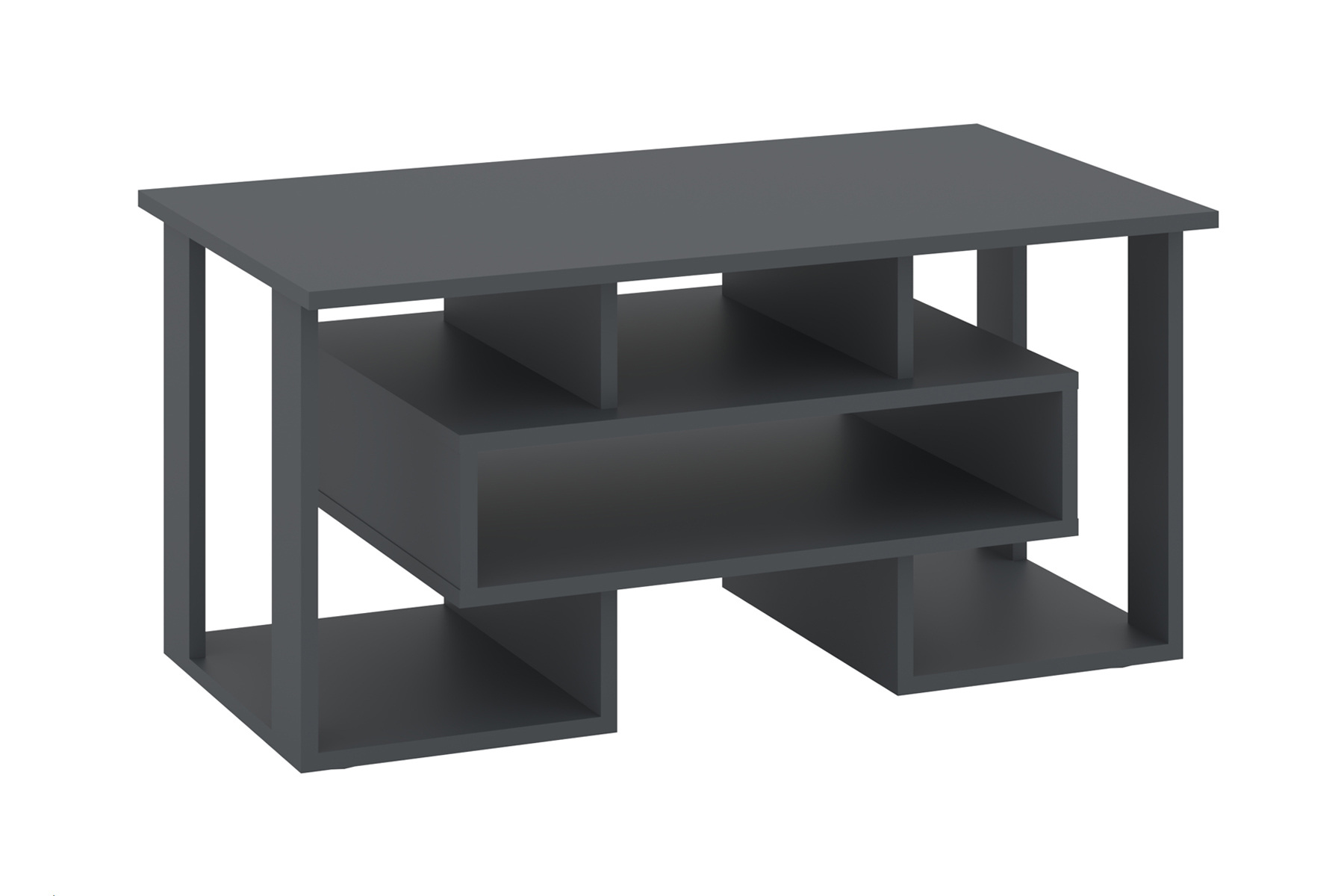 Модель має унікальний дизайн - прямокутної форми з рівними, чистими лініями. ЇЇ спокійно можна використовувати в якості журнального або телевізійного столика. На полицях можна розмістити книги, декоративні елементи або електроніку. Міцні ніжки забезпечують стабільність, а загальний вигляд столика є універсальним і підходить для різних варіантів інтер'єру.