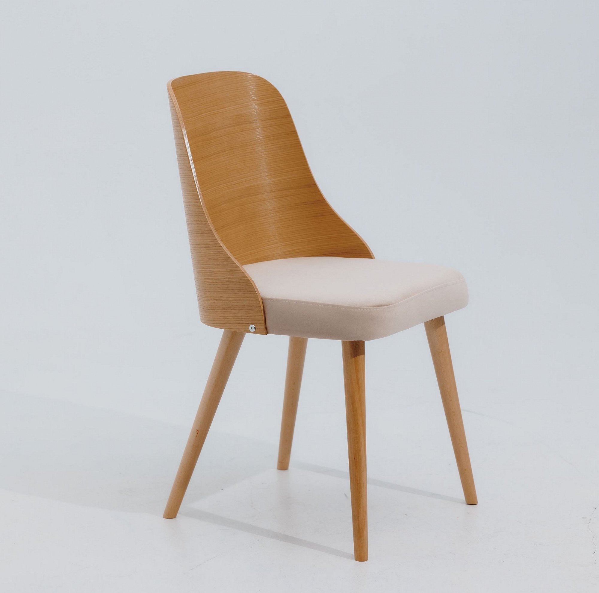 Закругленная спинка выполнена из гнутой фанеры, которая придаёт стулу плавные линии и современный вид.