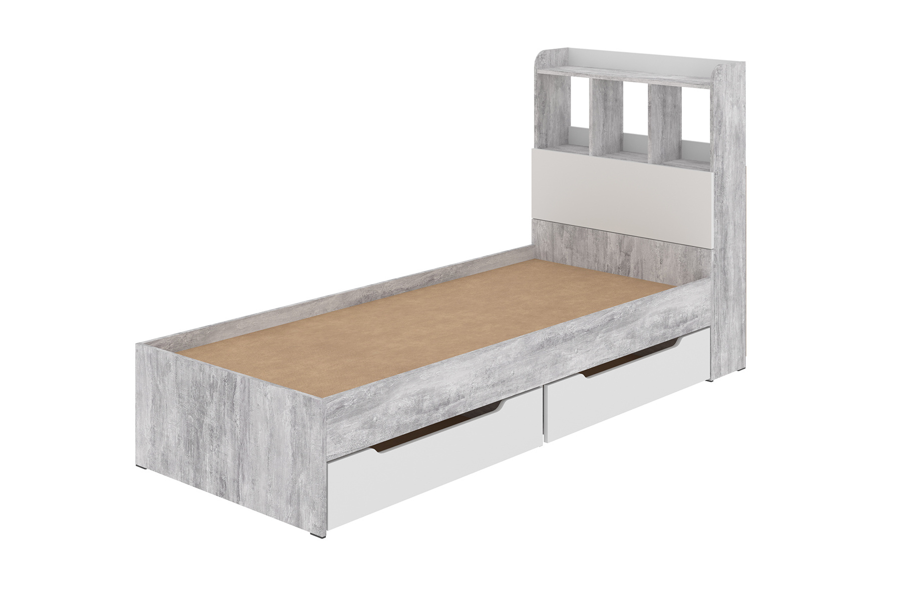Ліжко дитяче Linio (215х83,5х118 см, з шухлядками, бетон + білий)