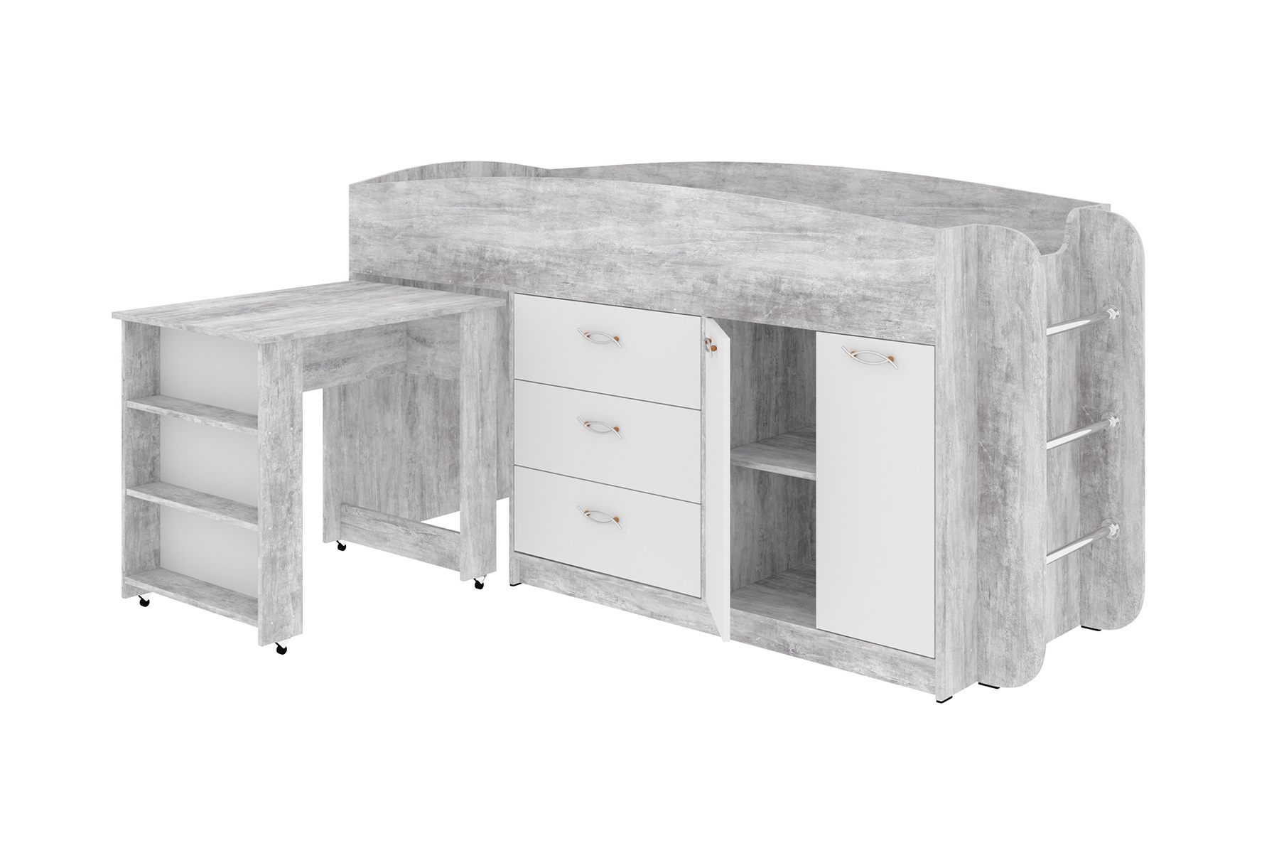 Ліжко двоярусне Classo (209,2х83,2х115 см, бетон + білий)