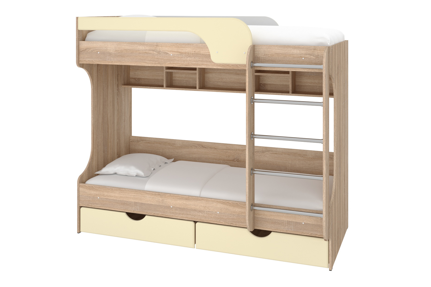 Ліжко двоярусне Planio (193,2х98,6х165,5 см, сонома + ваніль)