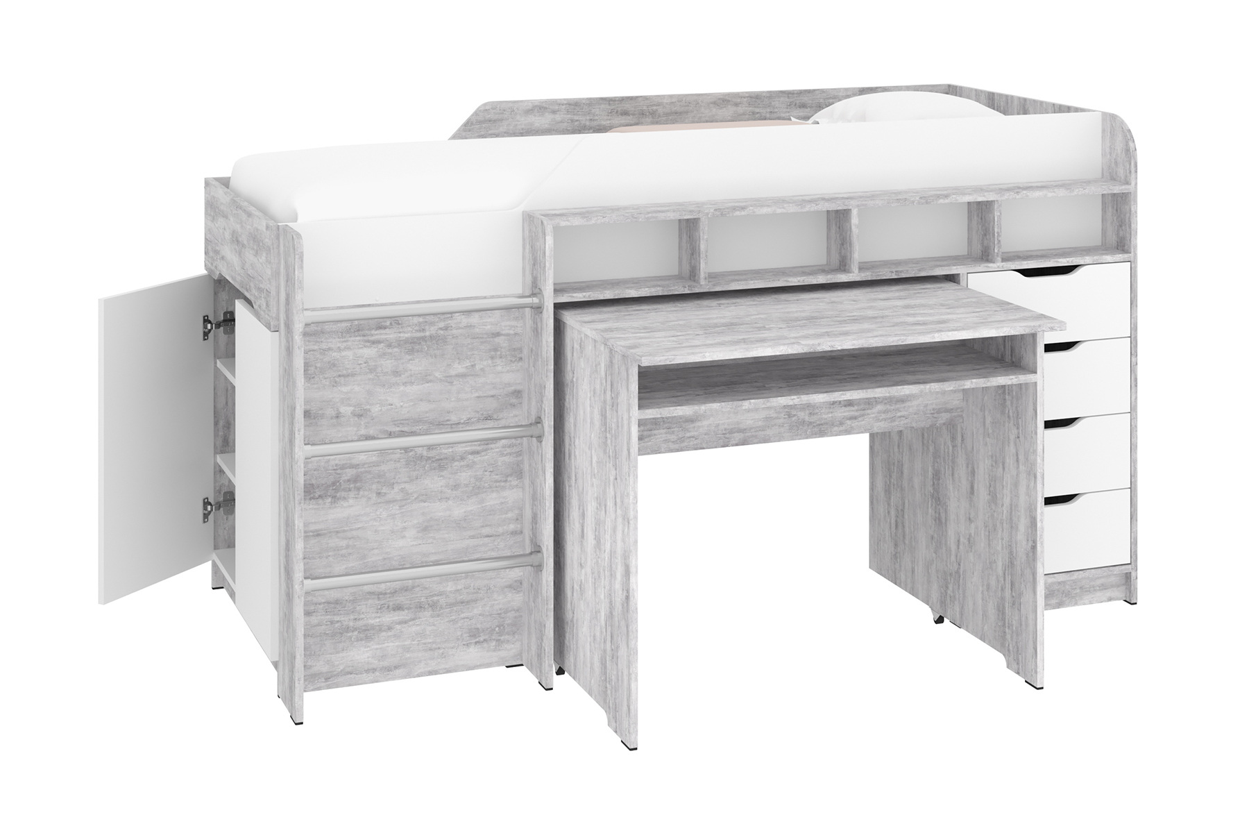 Ліжко двоярусне Genio (193,2х88,2х88,7 см, бетон + білий)