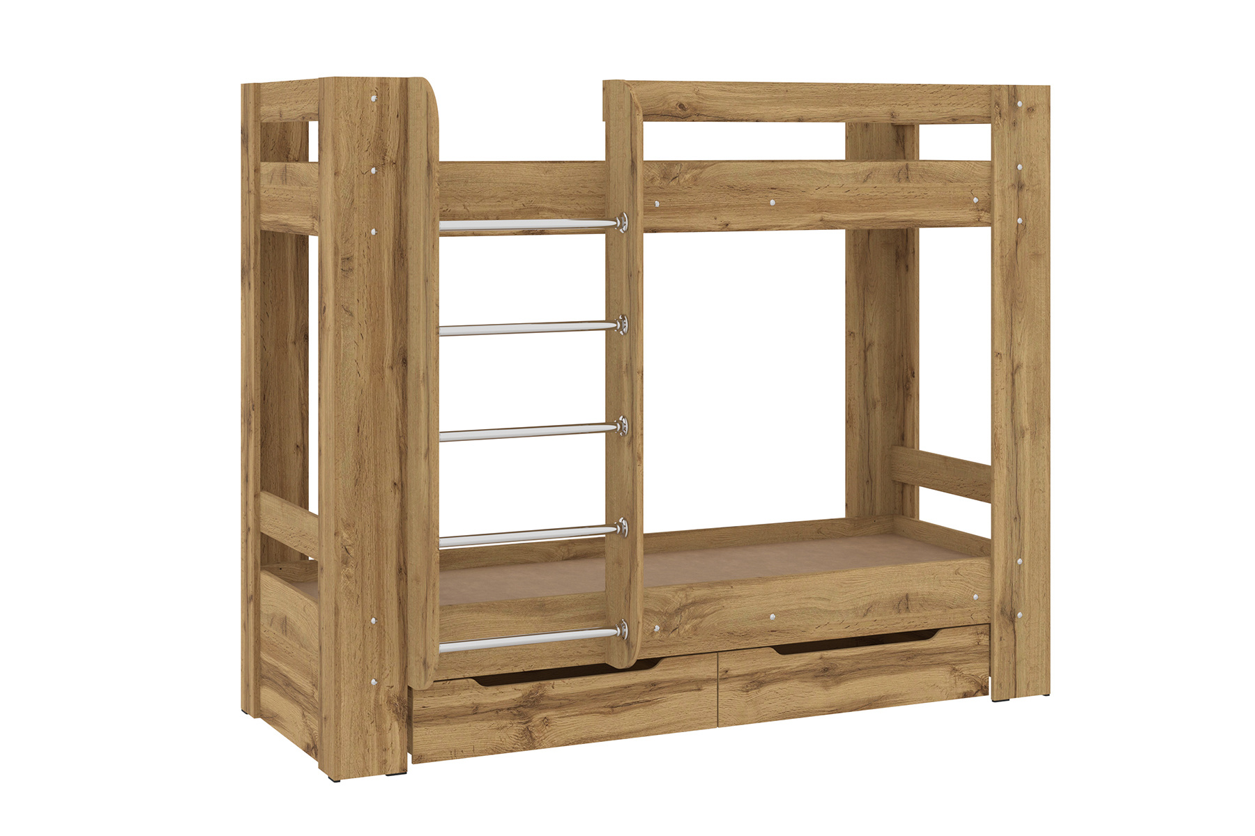 Це сучасне двоярусне ліжко призначене для двох дітей. Воно поєднує стильний дизайн та продуману практичність. Висока конструкція ліжка економить простір у дитячій кімнаті, надаючи кожній дитині своє окреме місце для сну. Для кращої організації дитячих речей та іграшок під нижнім ярусом розташовані дві місткі шухлядки.
