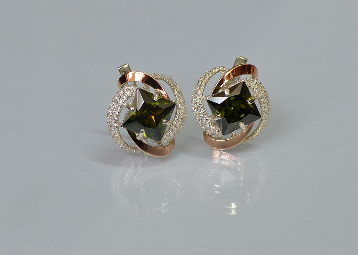 Описание Серебряные серьги Sil с золотыми накладками 130s-12 Олива (Sil-743)