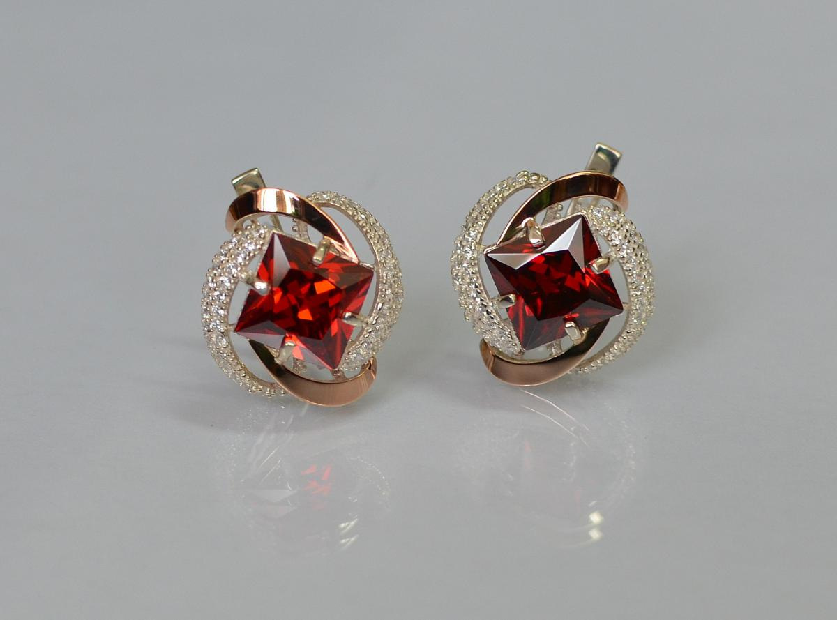 Описание Серебряные серьги Sil с золотыми накладками 130s-10 Красный (Sil-741)