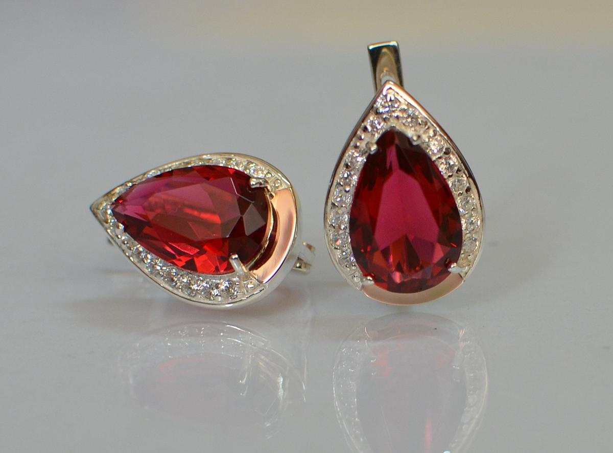 Описание Серебряные серьги Sil с золотыми пластинами 038s2-6 Красный (Sil-1210)