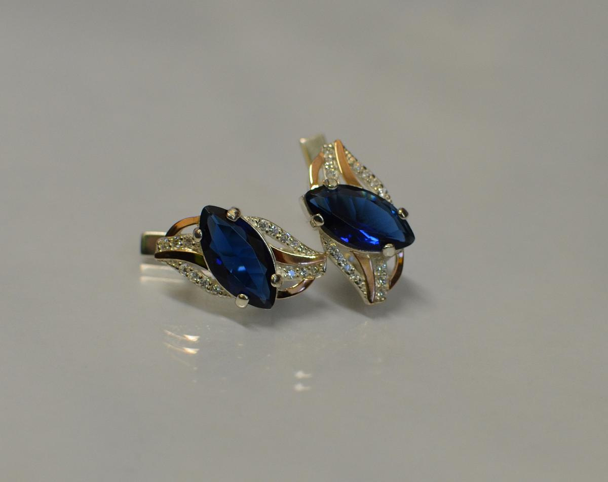 Описание Серебряные серьги Sil с золотыми пластинами 114s-12 Танзанит (Sil-844)